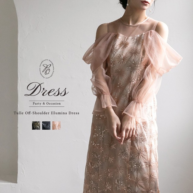 300191 epic day エピックデイ結婚式 ドレス オケージョン お呼ばれ チュールオフショルイルミナドレス スパンコール オフショルダー 長袖 パーティー 成人式 入学式 卒業式 二次会 食事会 女子会 他と被らない ワンピース 送料無料