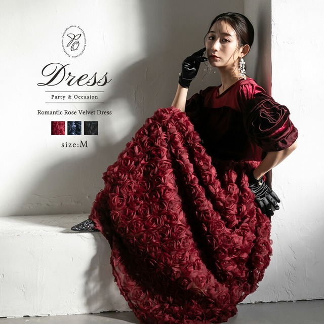 300194 epic day エピックデイ結婚式 ドレス お呼ばれ 秋冬 ベロア パーティー ドレス ロマンティックローズベロアドレス カラードレス バラ 薔薇 オケージョンワンピース 演奏会 発表会 二次会 成人式 女子会 送料無料