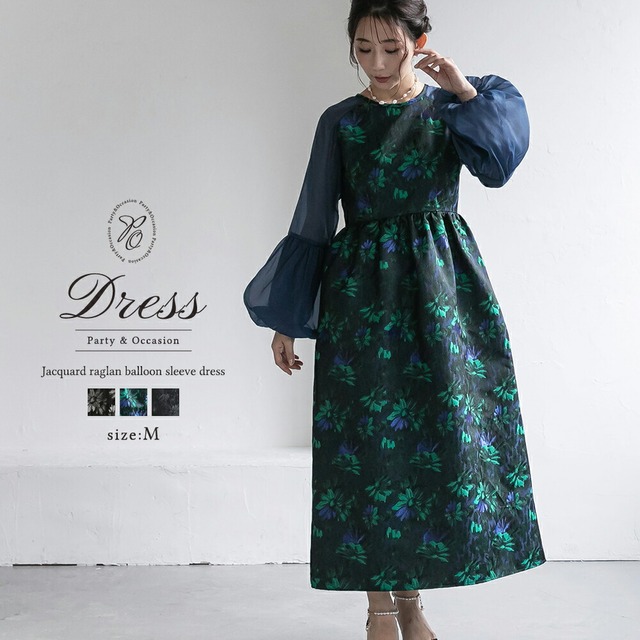 300195 epic day エピックデイパーティードレス ロングドレス 花柄ジャカード ジャガードラグランバルーンスリーブドレス 大人上品 オケージョン ワンピース 結婚式 お呼ばれ 二次会 発表会 謝恩会 同窓会 成人式 送料無料