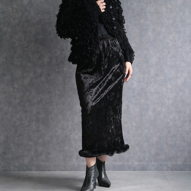 330107 any day エニーデイ ベロア スカート ロング レディース ボトムス クラッシュベロアナロースカート 裏起毛 ナロースカート ウエストゴム ブラック 黒 冬 20代 30代 送料無料