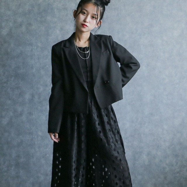 330089 any day エニーデイ ジャケット レディース テーラード ショート丈 クロップド ボレロ 長袖 アウター カジュアル ボタンデザイン カジュアル シンプル 大人 きれいめ 通勤 おしゃれ モード 春 秋 30代 40代 送料無料