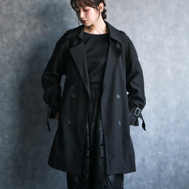 330094 any day エニーデイ トレンチコート レディース ミドル丈 キャンディースリーブトレンチコート ウエストベルト 春 秋 冬 コート アフター ブラック 黒 シンプル カジュアル 通勤 結婚式 フォーマル ビジネス OL 送料無料