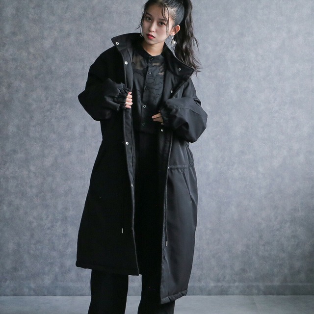 330087 any day エニーデイ スタンドカラー モンスターコート 中綿 キルト アウター レディース コート ロングコート ダウンジャケット ブルゾン 黒 ブラック ジャケット 秋 冬 あったか オーバーサイズ ゆったり 送料無料