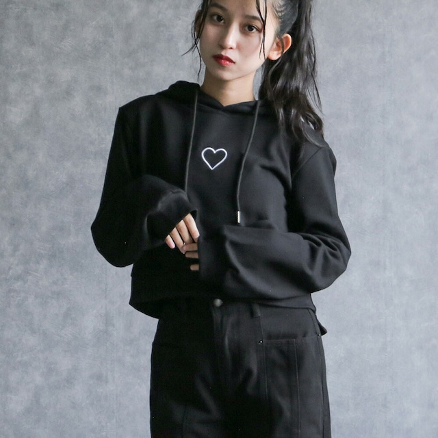 330103 any day エニーデイ パーカー ショート丈 レディース 可愛い ハート 刺繍 ハートポイントショートフーディー トレーナー スウェット 黒 ブラック 10代 20代 送料無料