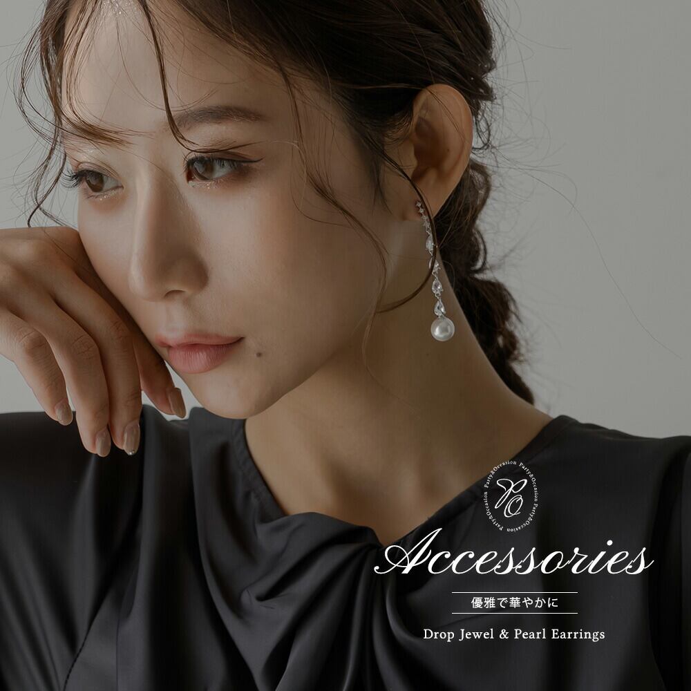 しずく型のストーンが連なり、顔まわりに華やかな輝きをプラス。