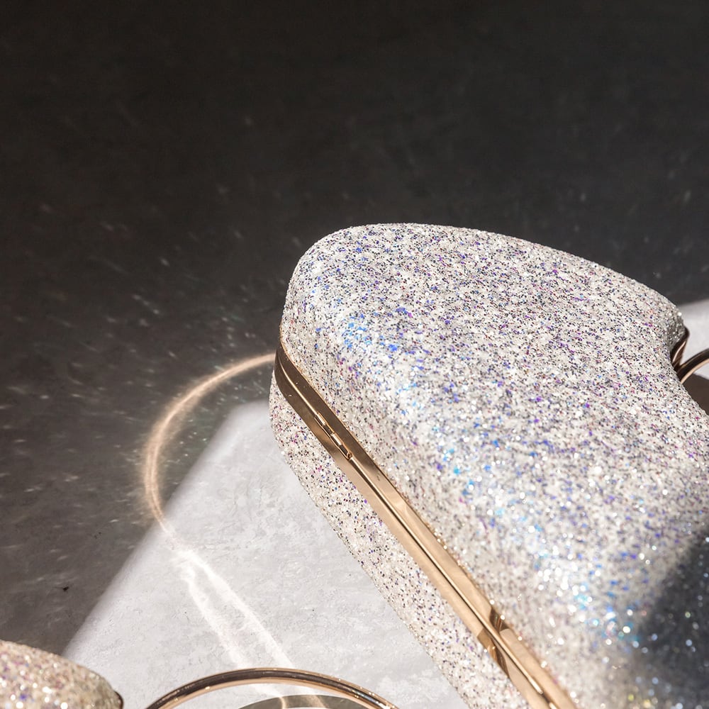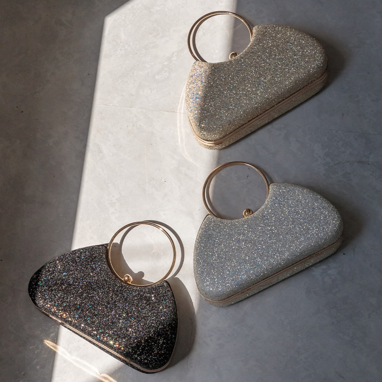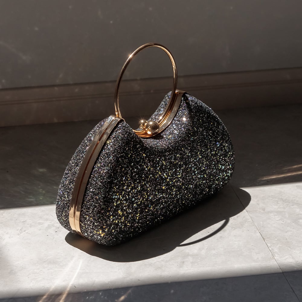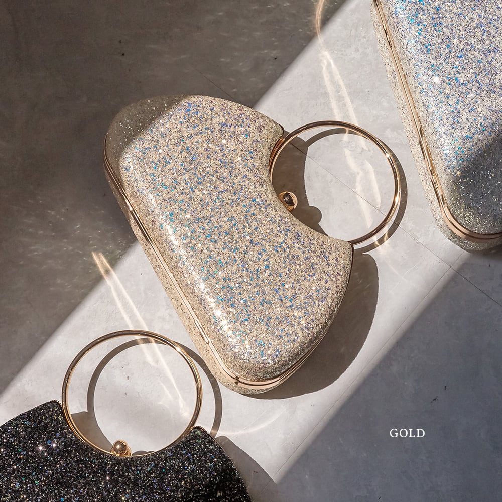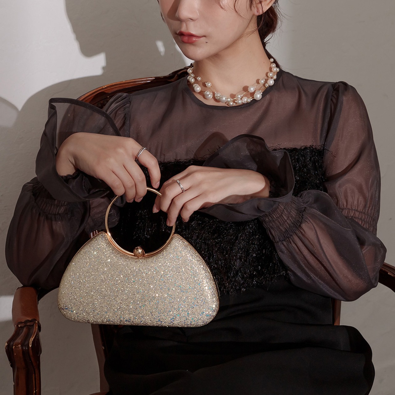 甘く上品にきらめくラメと、ころんと愛らしいフォルムが魅力のハンドバッグ。