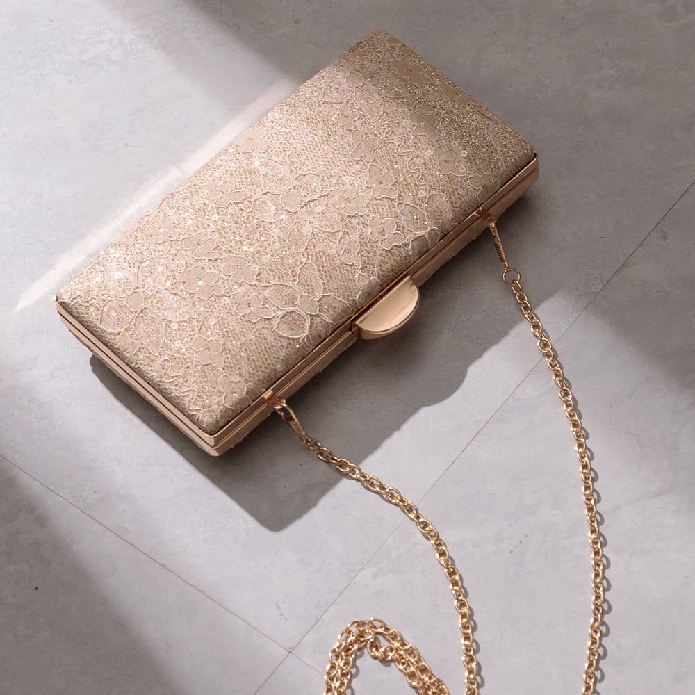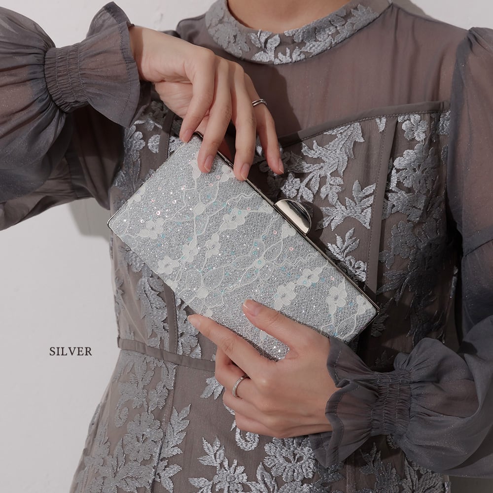 エレガンスと華やかさを兼ね備えたクラッチバッグ。