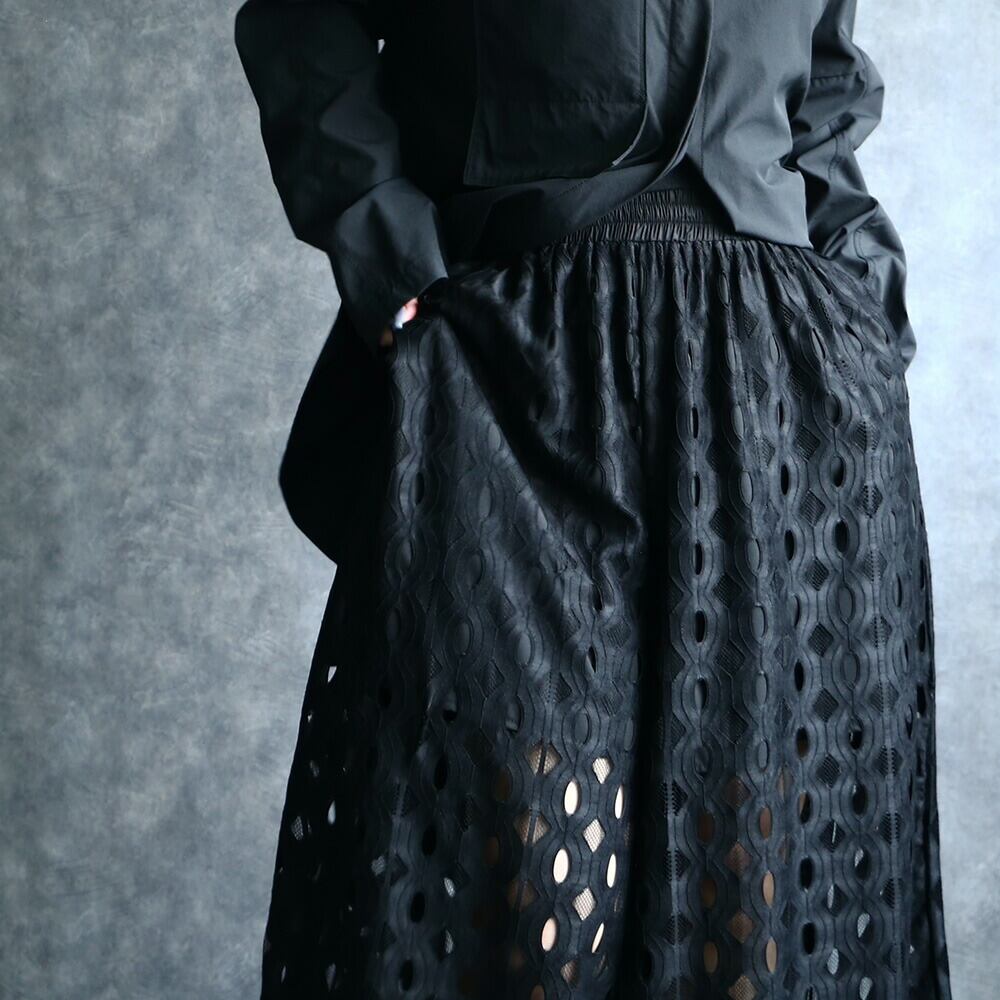 ワイドパンツ レディース レース イージーパンツ 体型カバー 黒 ブラック カジュアル 涼しい 透け感 シンプル おしゃれ