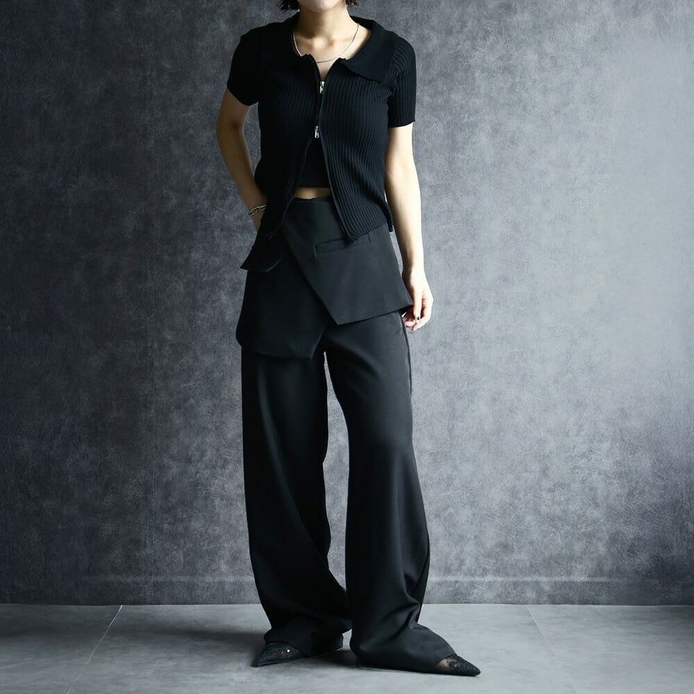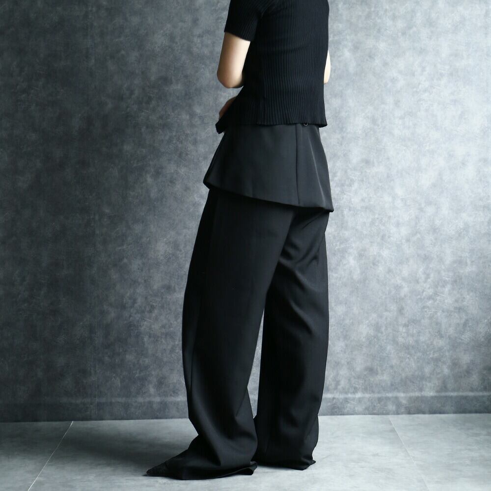 ボトムス ストレート スラックス パンツ ラップスカート 取り外し可能 黒 モード系 ロングパンツ 無地