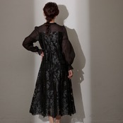 ほんのり透けてふわっと広がるスリーブが目を惹くドレス。