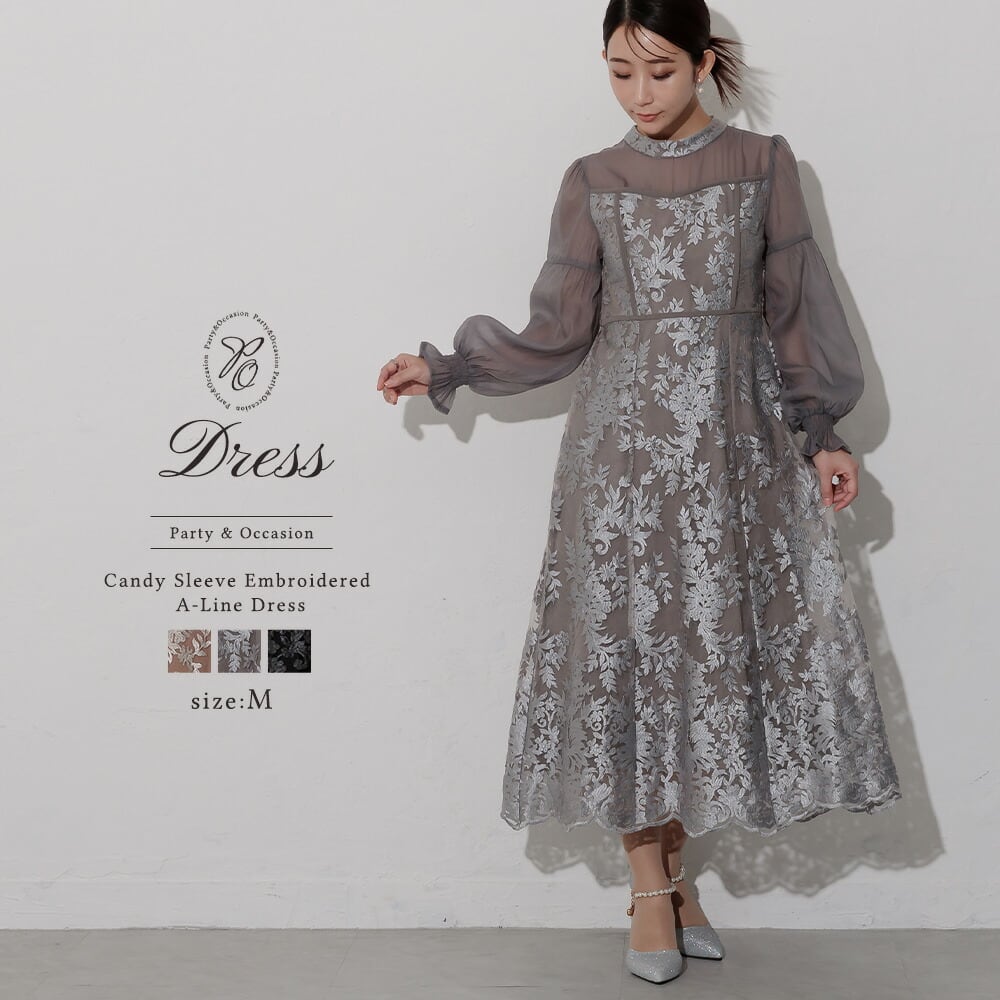 300178 epic day エピックデイ結婚式 ワンピース ドレス キャンディスリーブ刺繍Aラインドレス オケージョン お呼ばれ 長袖 刺繍レース フォーマルドレス ウエストマーク 20代 30代 40代 送料無料