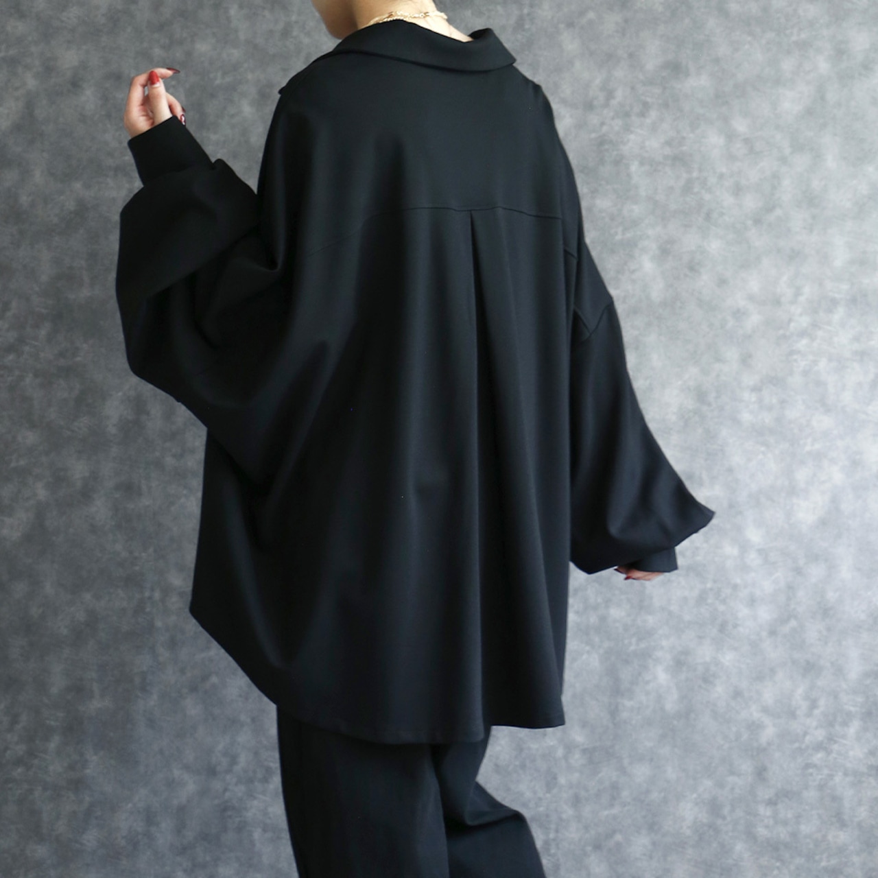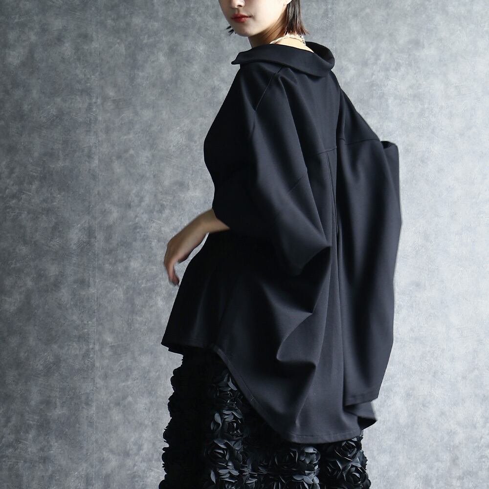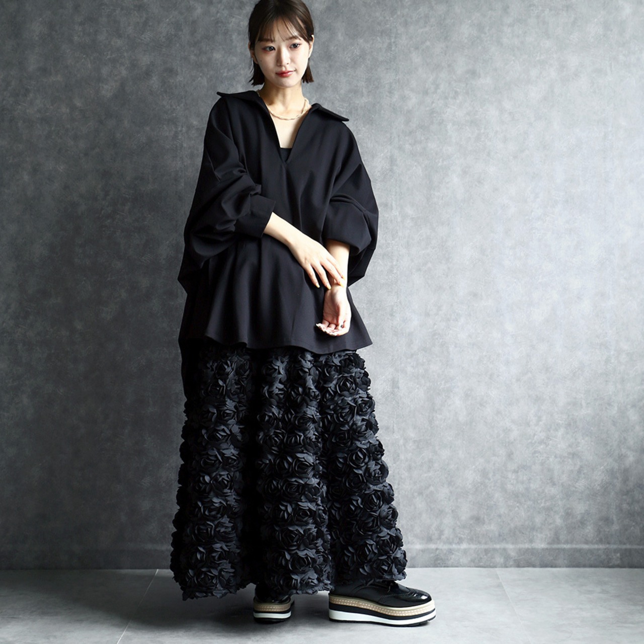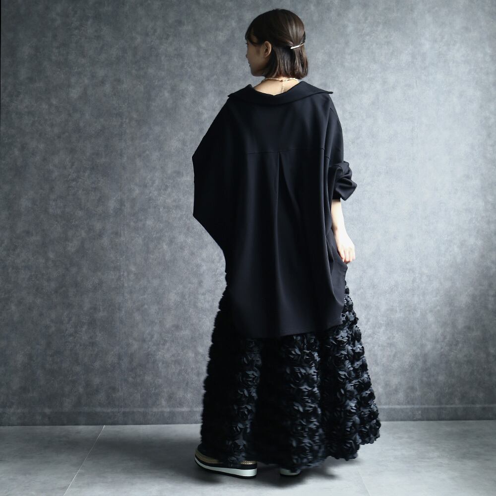 330068 any day エニーデイプルオーバー レディース 長袖 トップス 前後差 お尻が隠れる チュニック スキッパー スキッパーカラータックプルオーバー 大きめ オーバーサイズ 黒 ブラック 送料無料