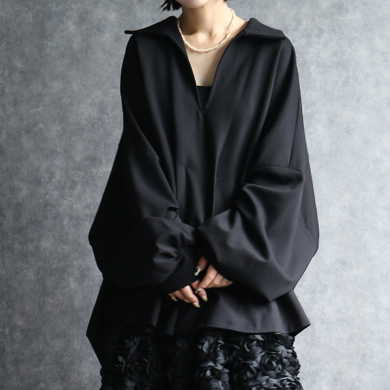 襟元を抜け感のあるスキッパーデザインに仕上げた、オーバーサイズのプルオーバー。