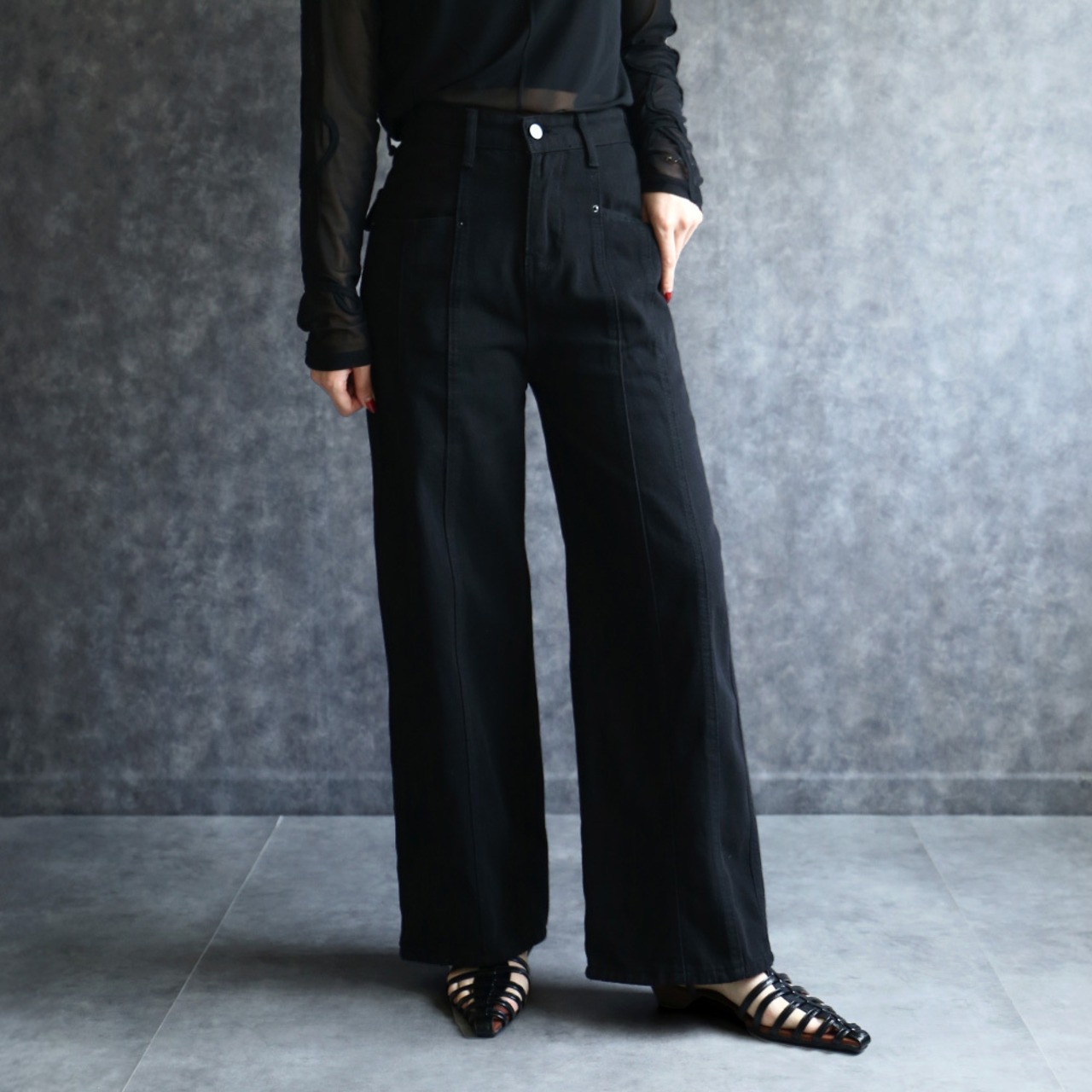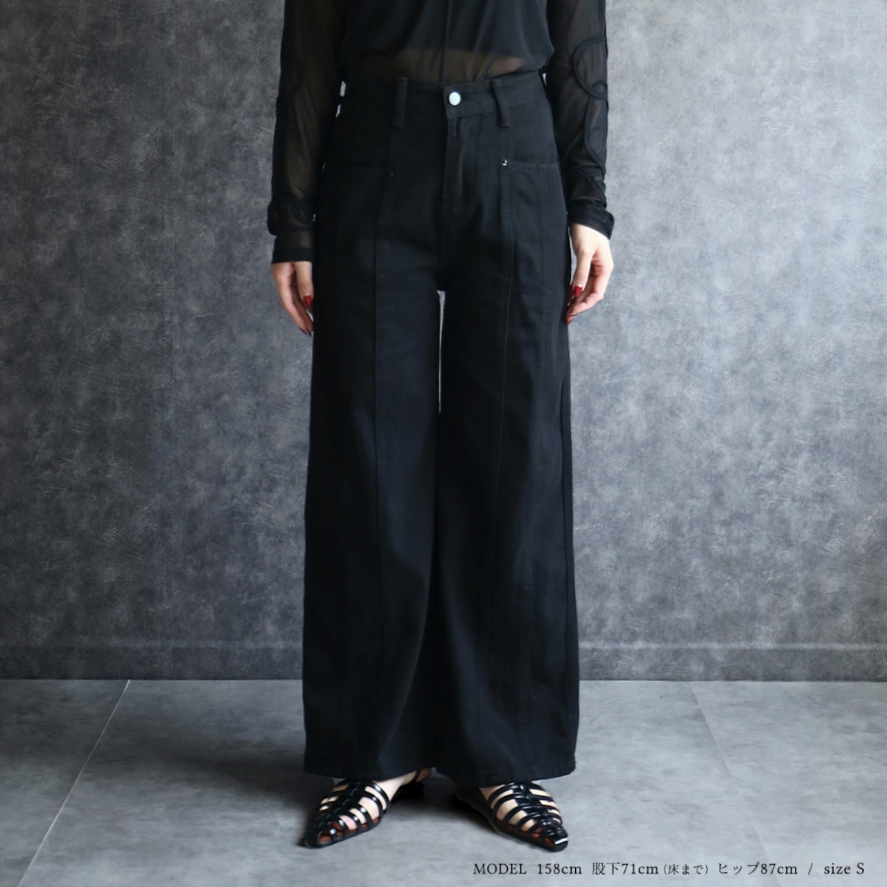 330069 any day エニーデイデニムパンツ レディース ゆったり ボトムス ジーンズ ジーパン バレルシルエットスイッチデニム すっきり 疲れない ブラックデニム カジュアル パンツ シンプル 送料無料