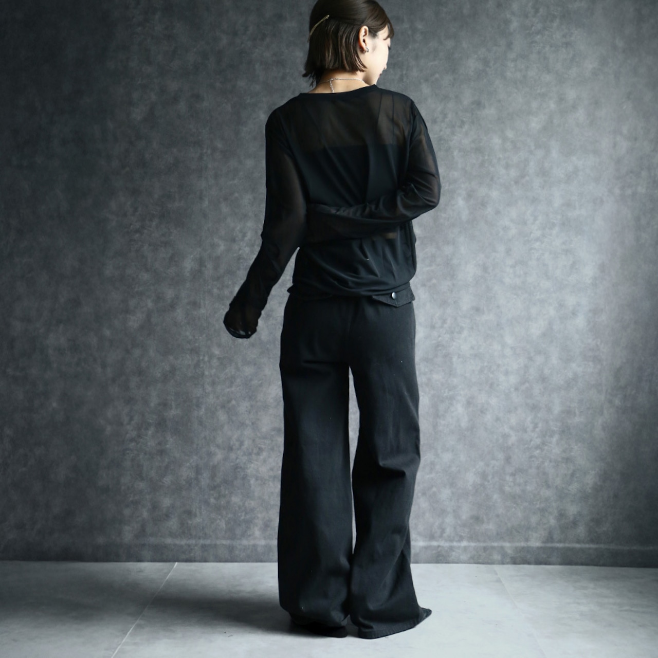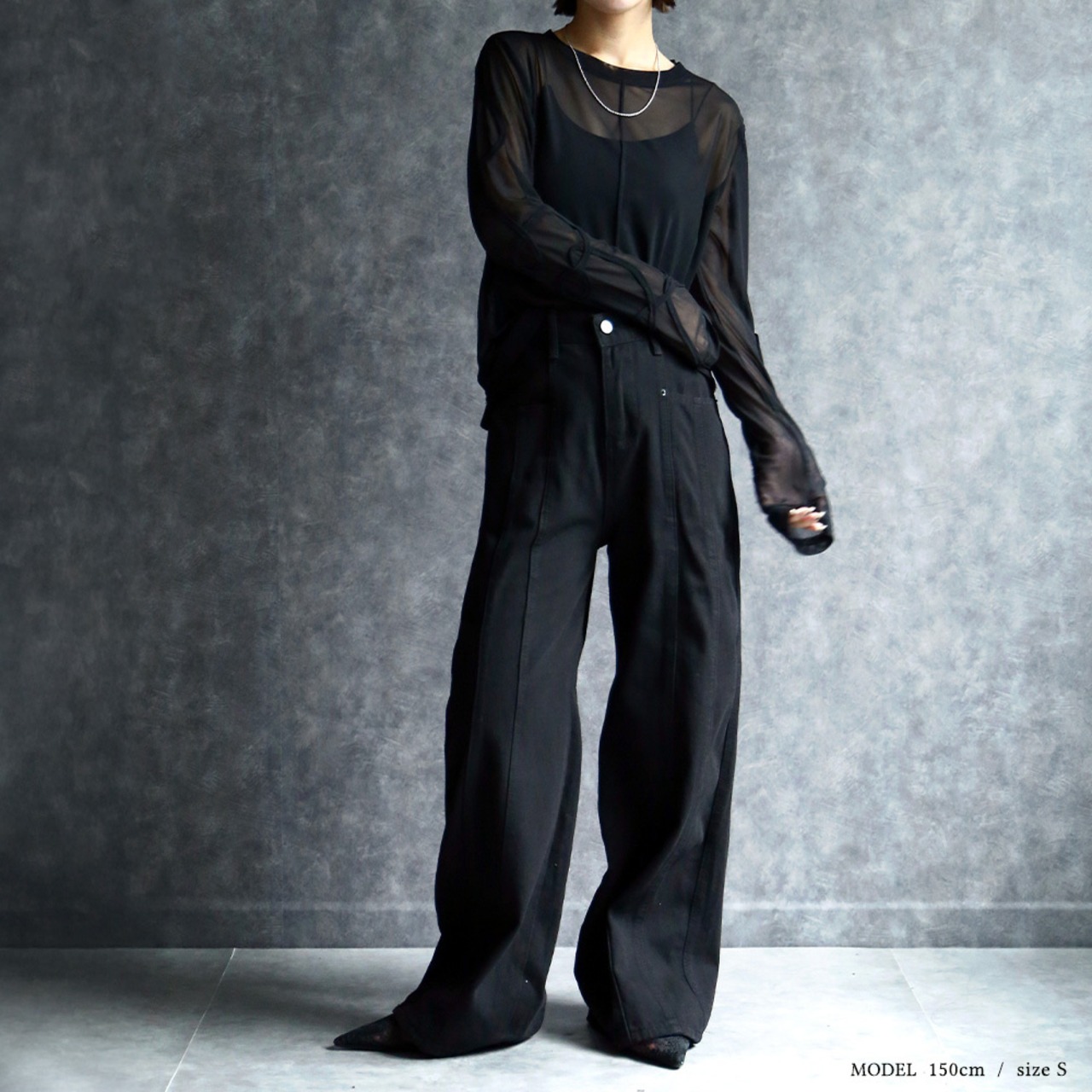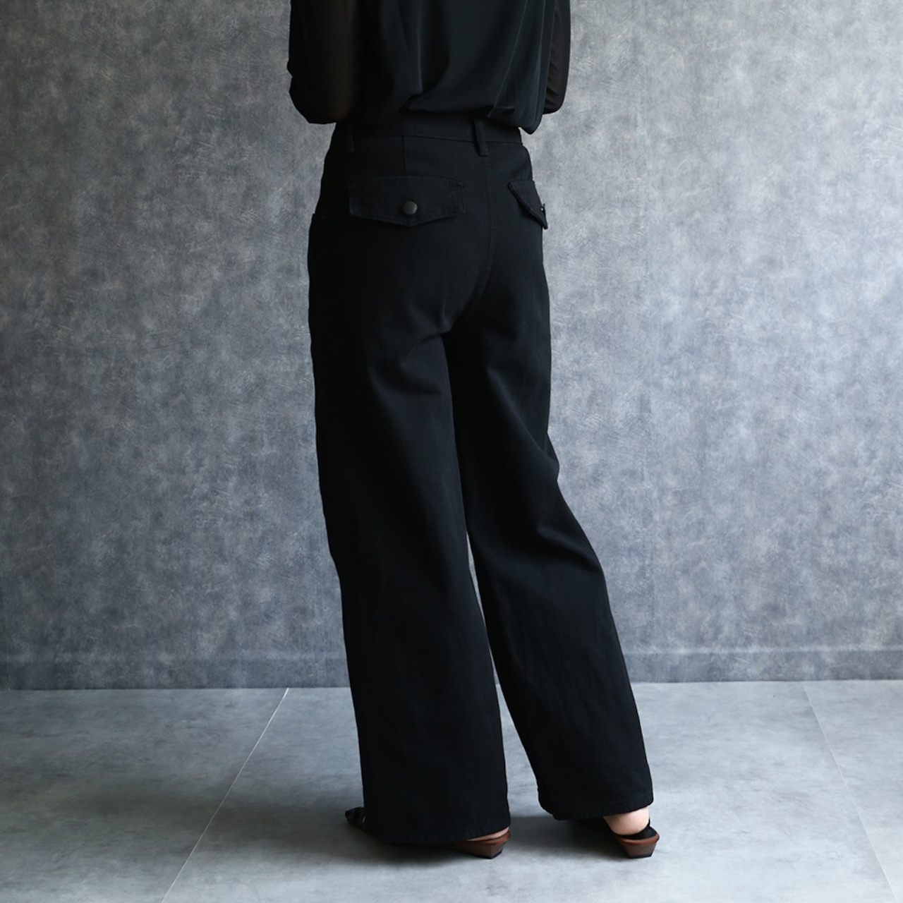 腰まわりにほどよいゆとりを残しながら、すっきりと見えるよう計算されたシルエットに。