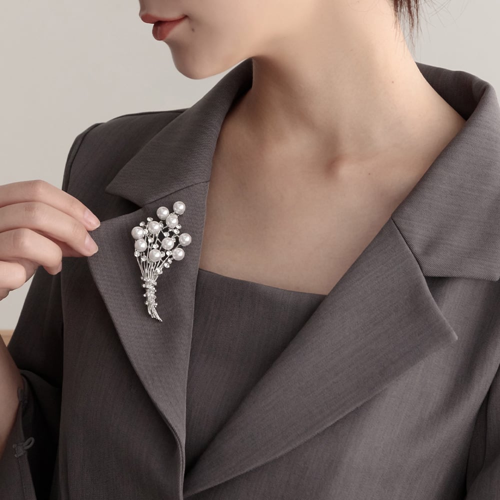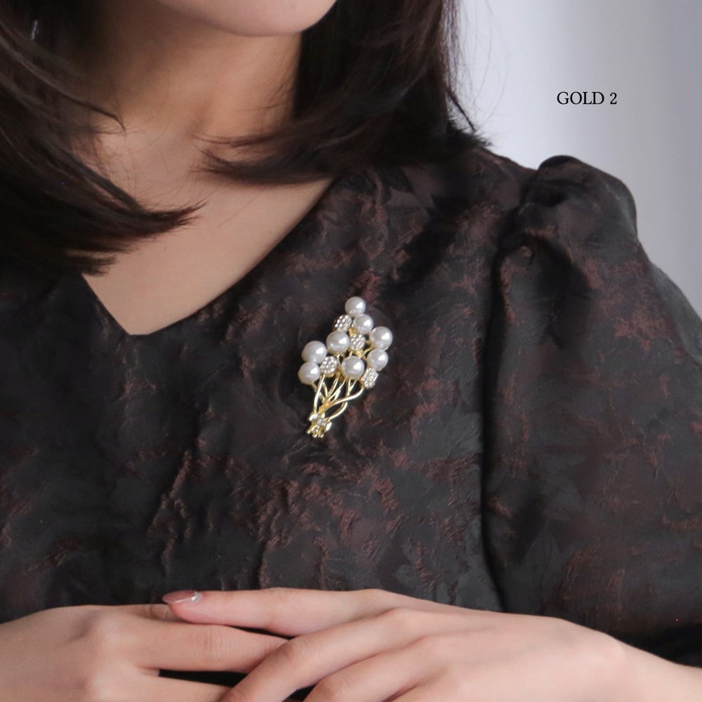 小さなブーケのようなデザインが目を引く、上品なブローチ。