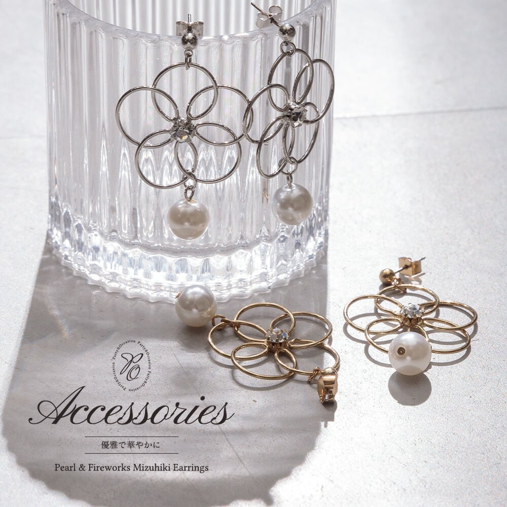 ピアス フープ シルバー ゴールド アクセ アクセサリー 可愛い 花火結び 水引き 和 和風 着物 袴 浴衣 ビジュー パール