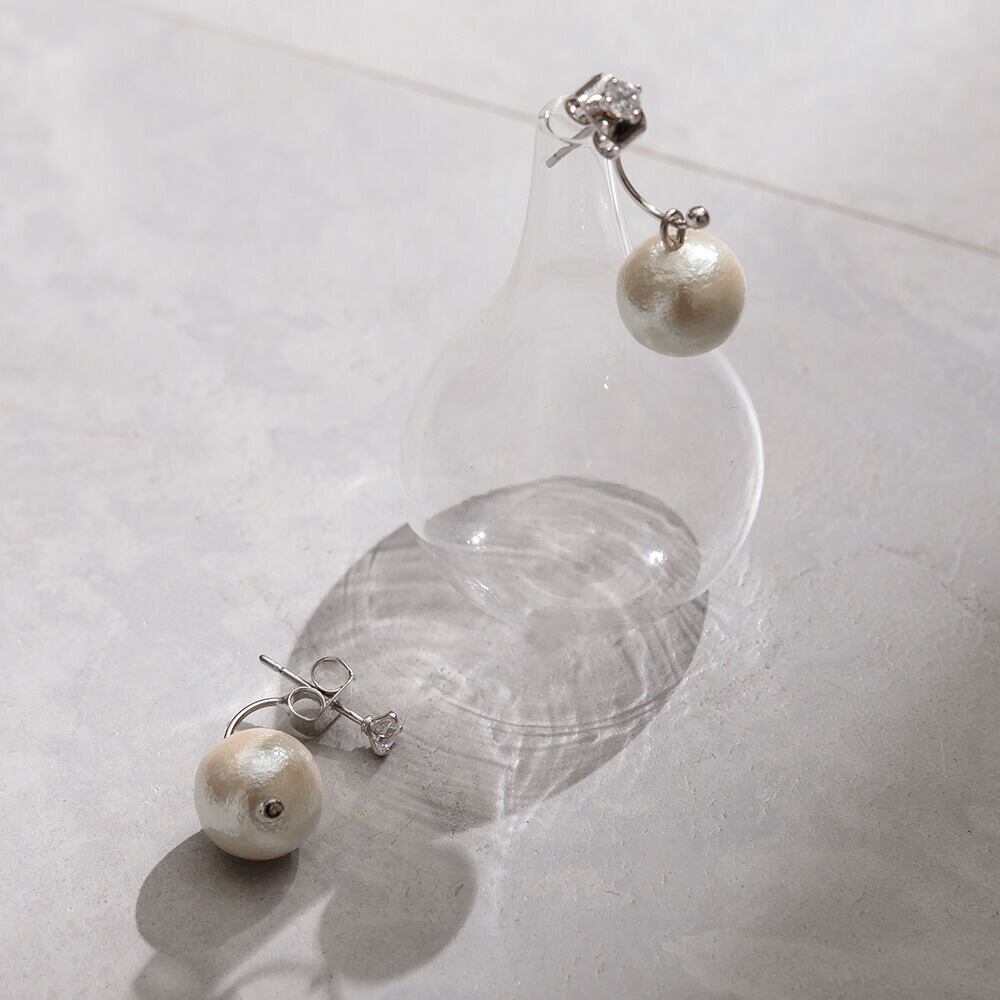 ピアス イヤリング パール シンプル 揺れる 小さめ 上品 結婚式 パーティー コットンパール 日本製 デート フォーマル