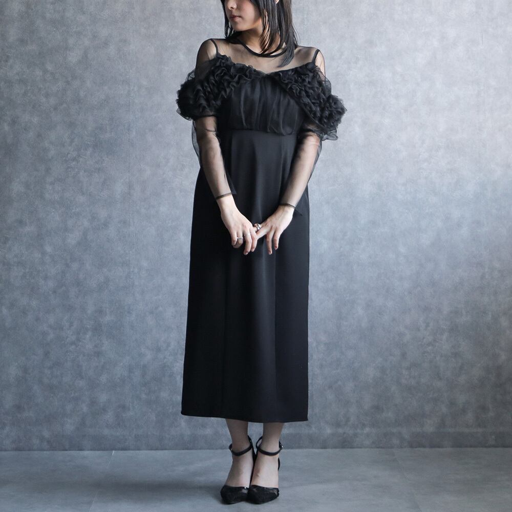 300182 any day エニーデイ結婚式 ドレス オケージョン ワンピース お呼ばれドレス リッチチュールオフショルペンシルドレス フリル オフショル 透け感 プチプラ 細見え パーティドレス オケージョンワンピース 春 夏 秋 冬 20代 30代 40代 送料無料