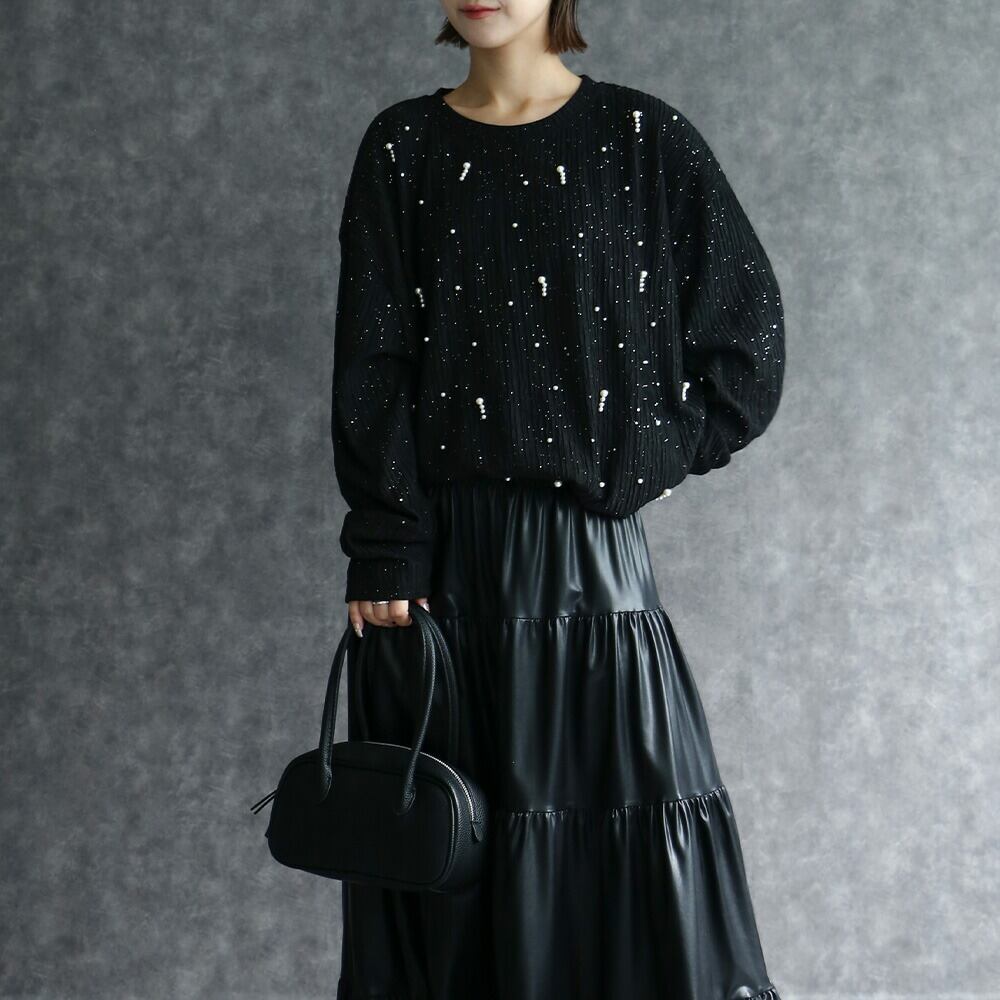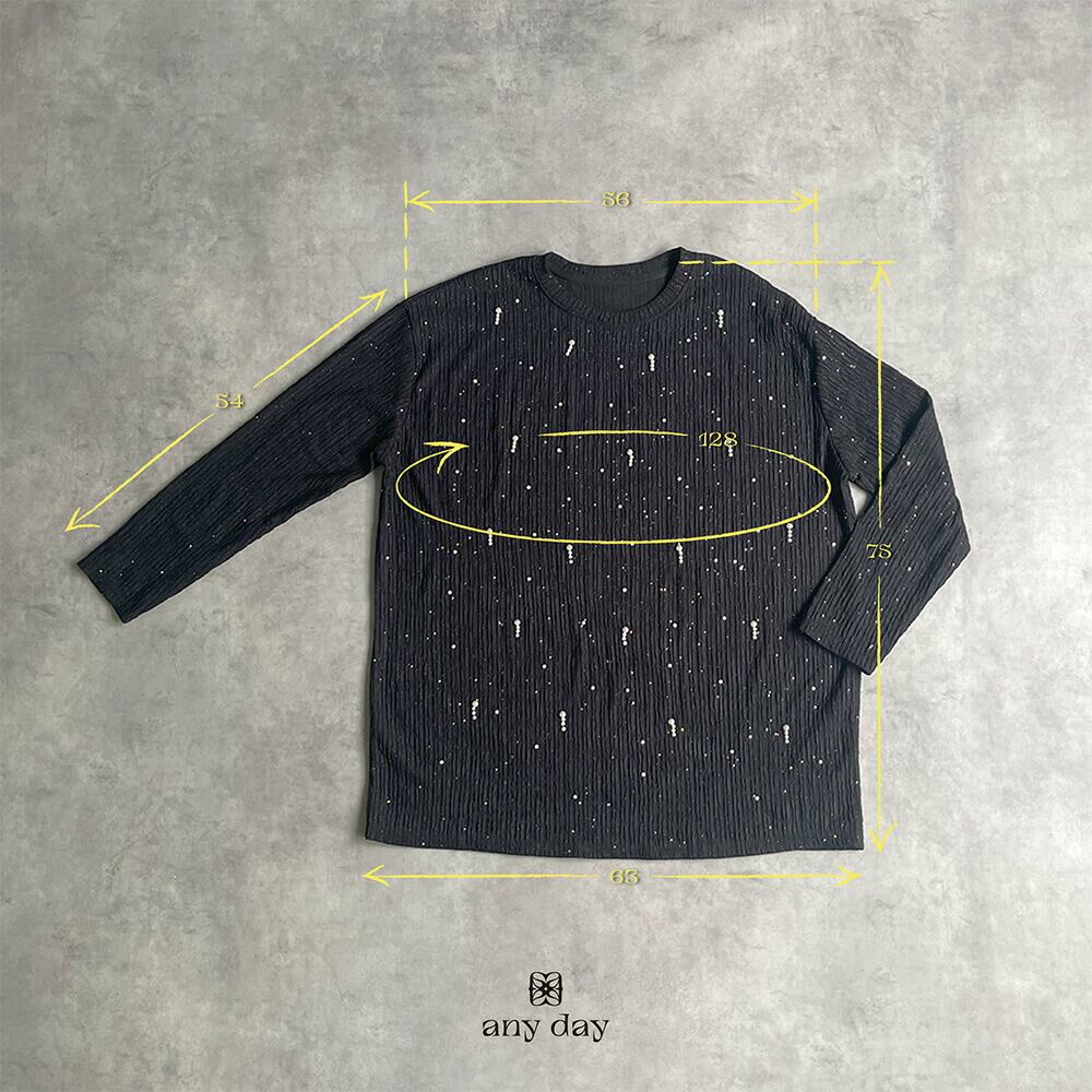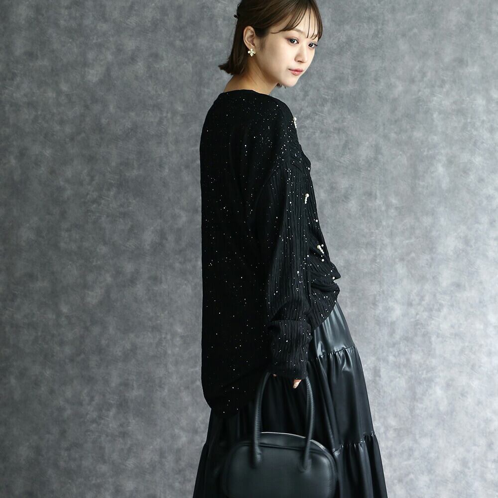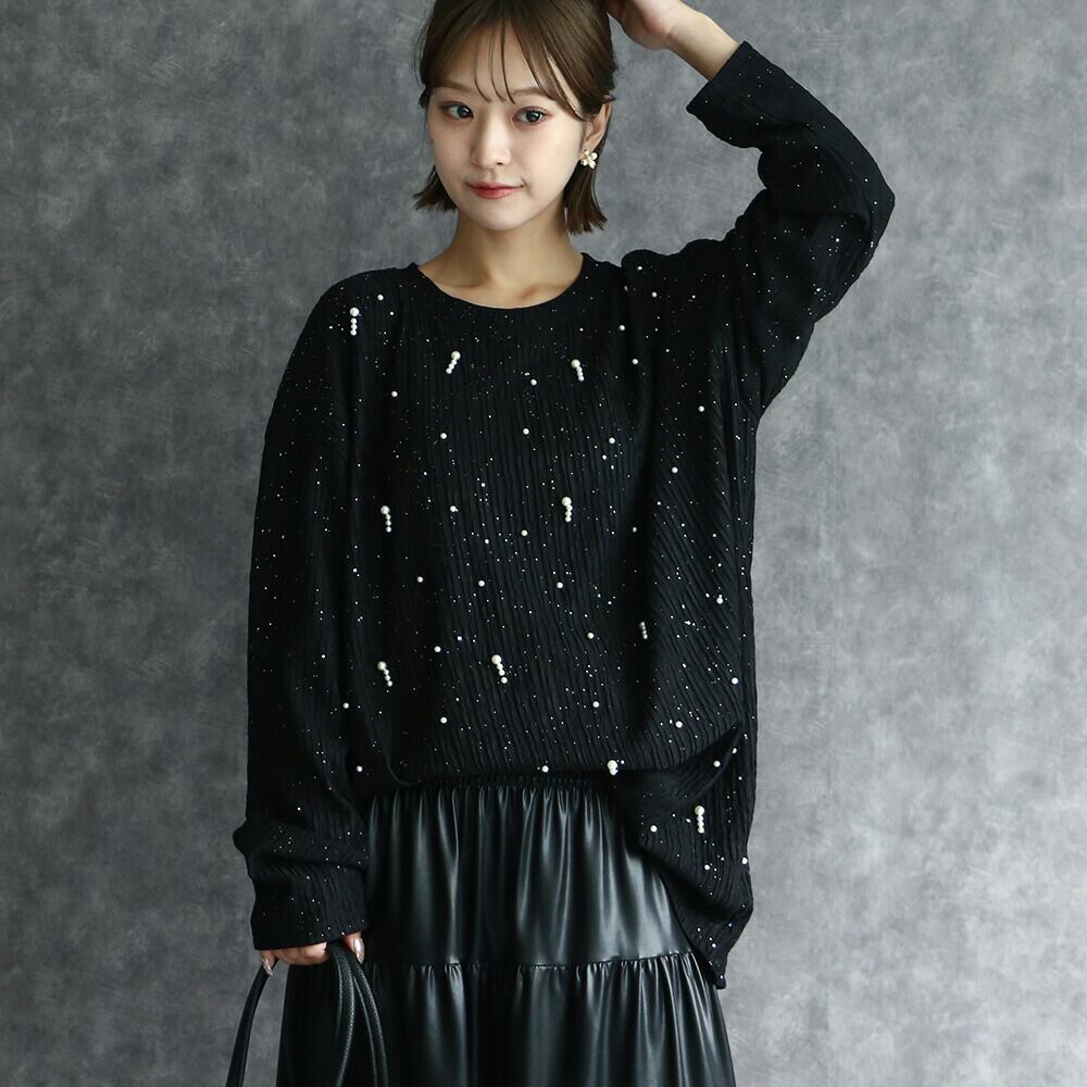 330073 any day エニーデイTシャツ カットソー チュニック ブラック パール付き ドレッシーパールチュニック ブラック 黒 ラメ キラキラ きらきら トップス 長袖 薄手 レディース 大人可愛い おしゃれ きれいめ ゆったり オーバーサイズ 送料無料
