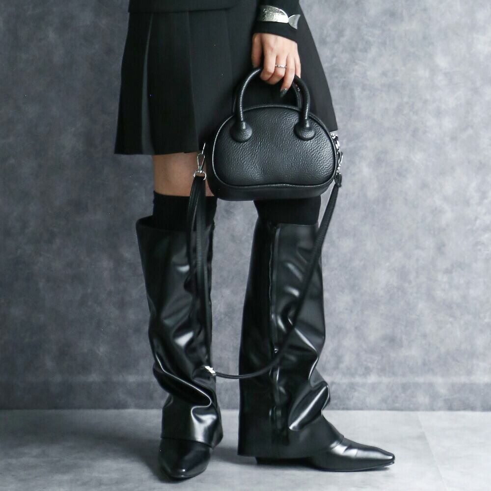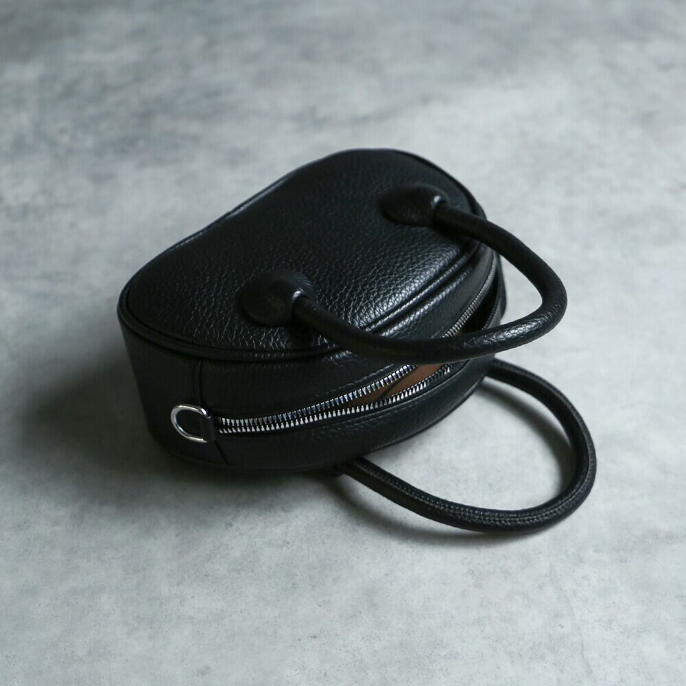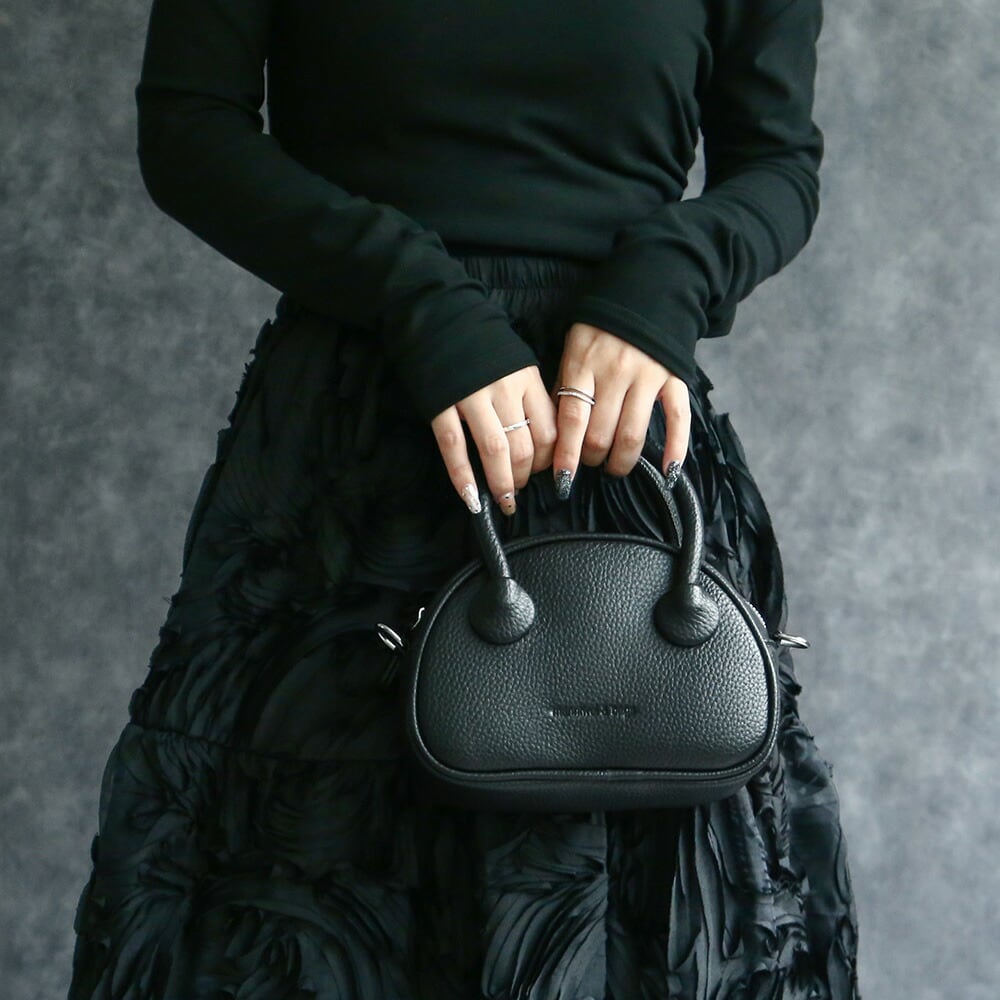 ころんと丸みを帯びたフォルムに、シボ素材が映える。