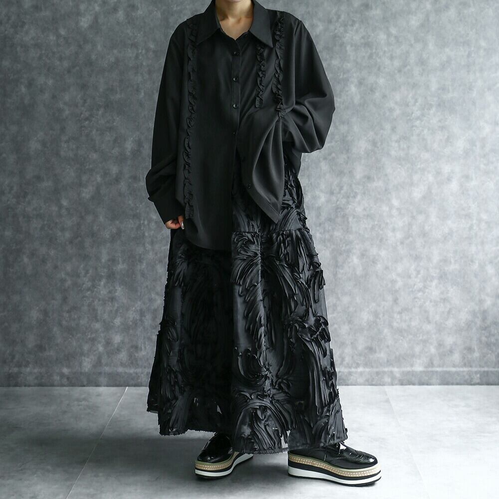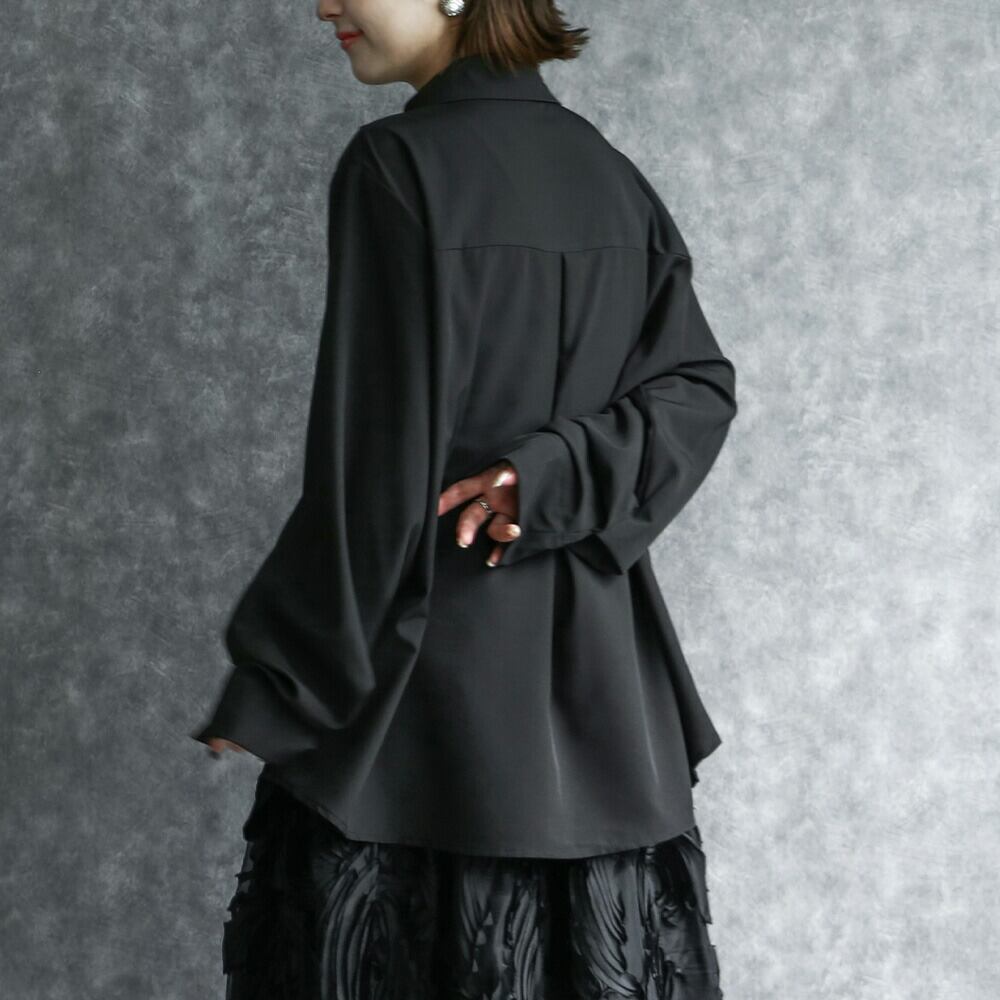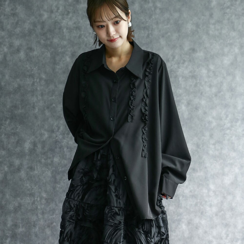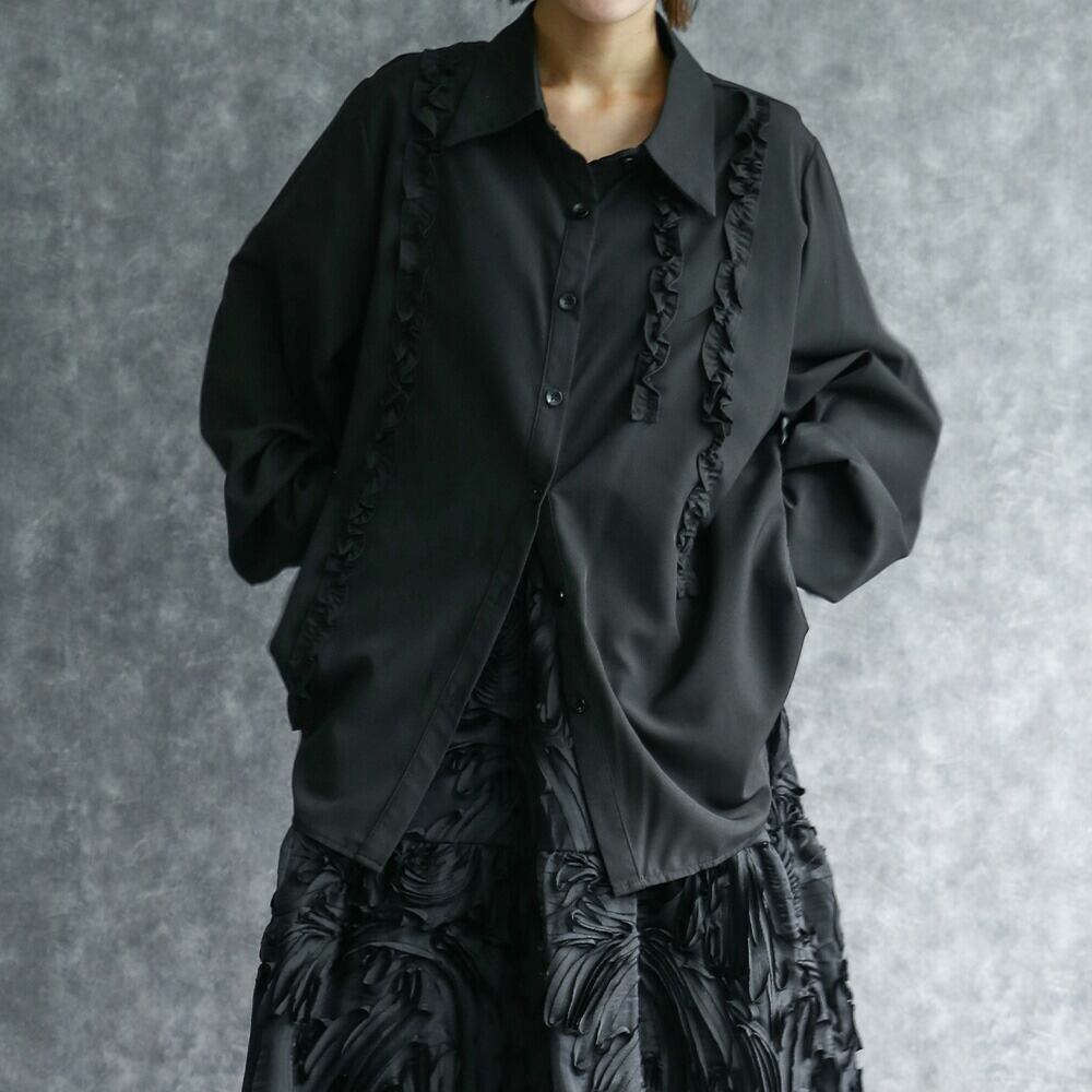 330076 any day エニーデイシャツ ブラウス レディース 社交界 フリル 長袖 ブラック 黒 シャツ ブラウス レディース 長袖 ブラック 黒 フリルブラウス ボタンシャツ アシンメトリー アシメ トップス 個性派 おしゃれ 送料無料