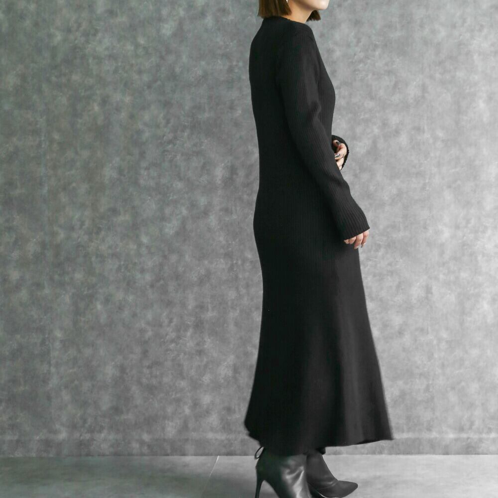 ニット タイトワンピース ブラック ブラックワンピ レディース ロング丈 シンプル リブニット くびれ 大人可愛い お出かけ デート 女子会