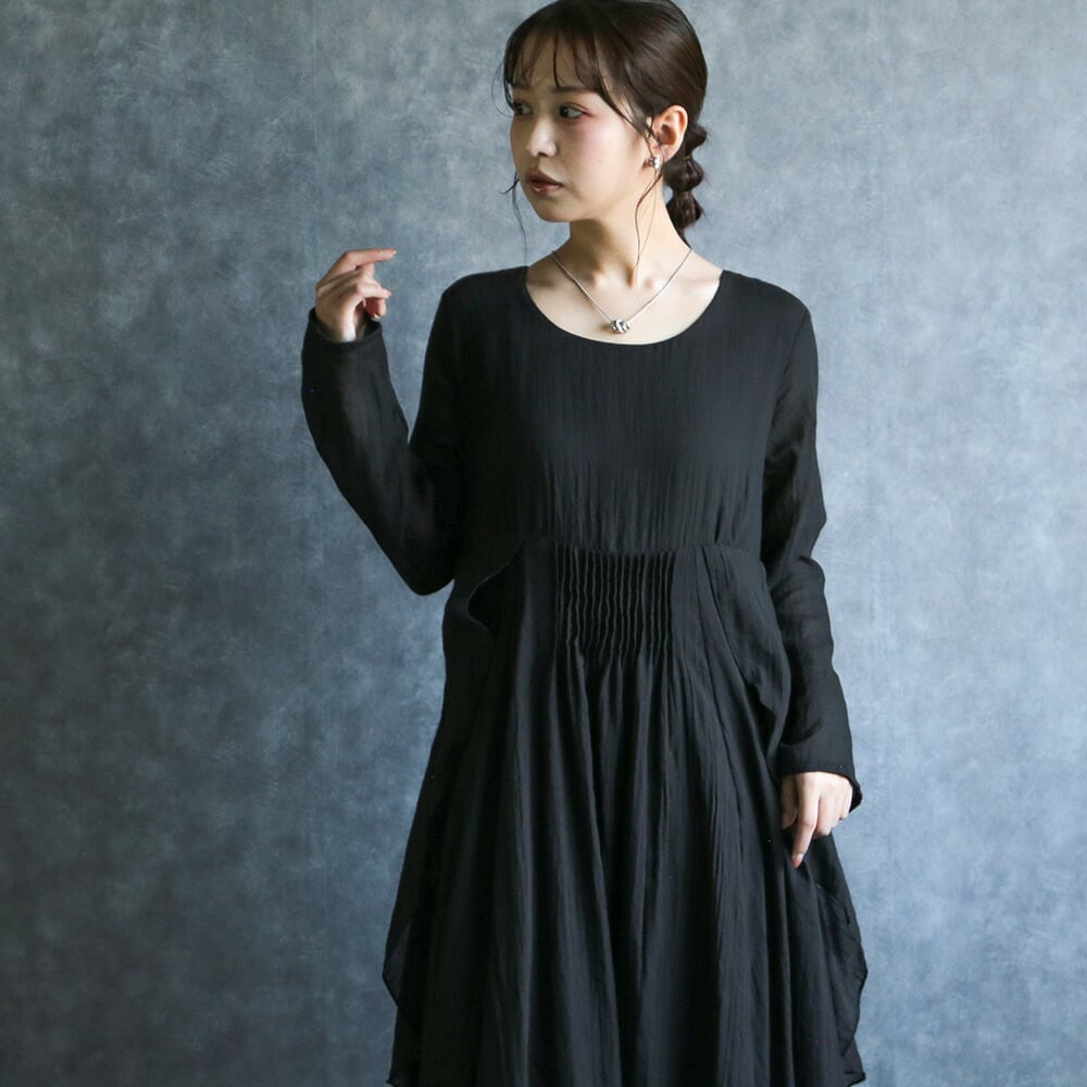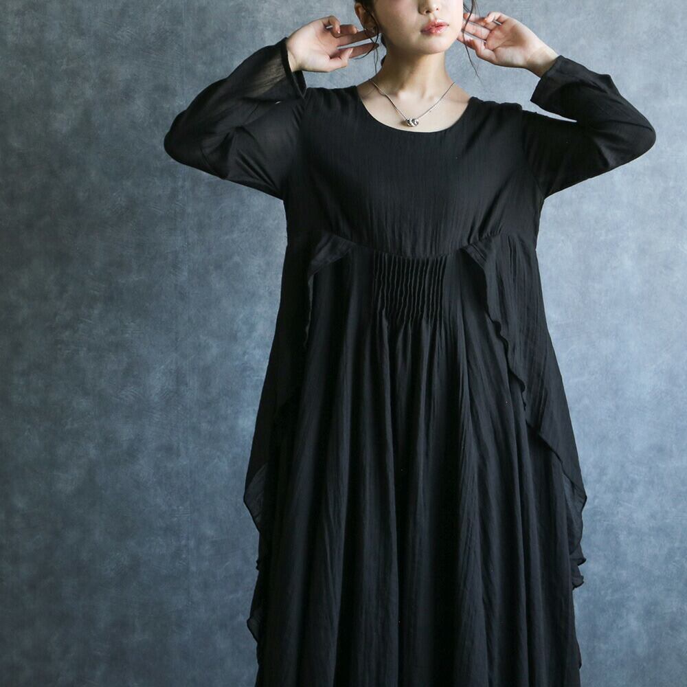 330075 any day エニーデイ デイワンピース レディース きれいめ 黒 ロングワンピース 綿 コットン 天然素材 長袖 モード ドレープ 体型カバー シンプル ママコーデ カジュアル デート 女子会 お出かけ 観劇 ライブ 食事会 30代 40代 送料無料