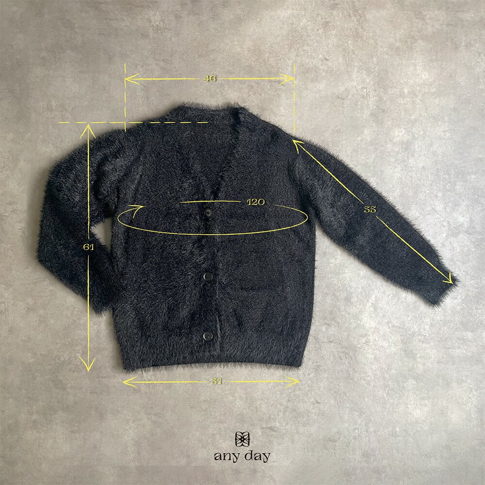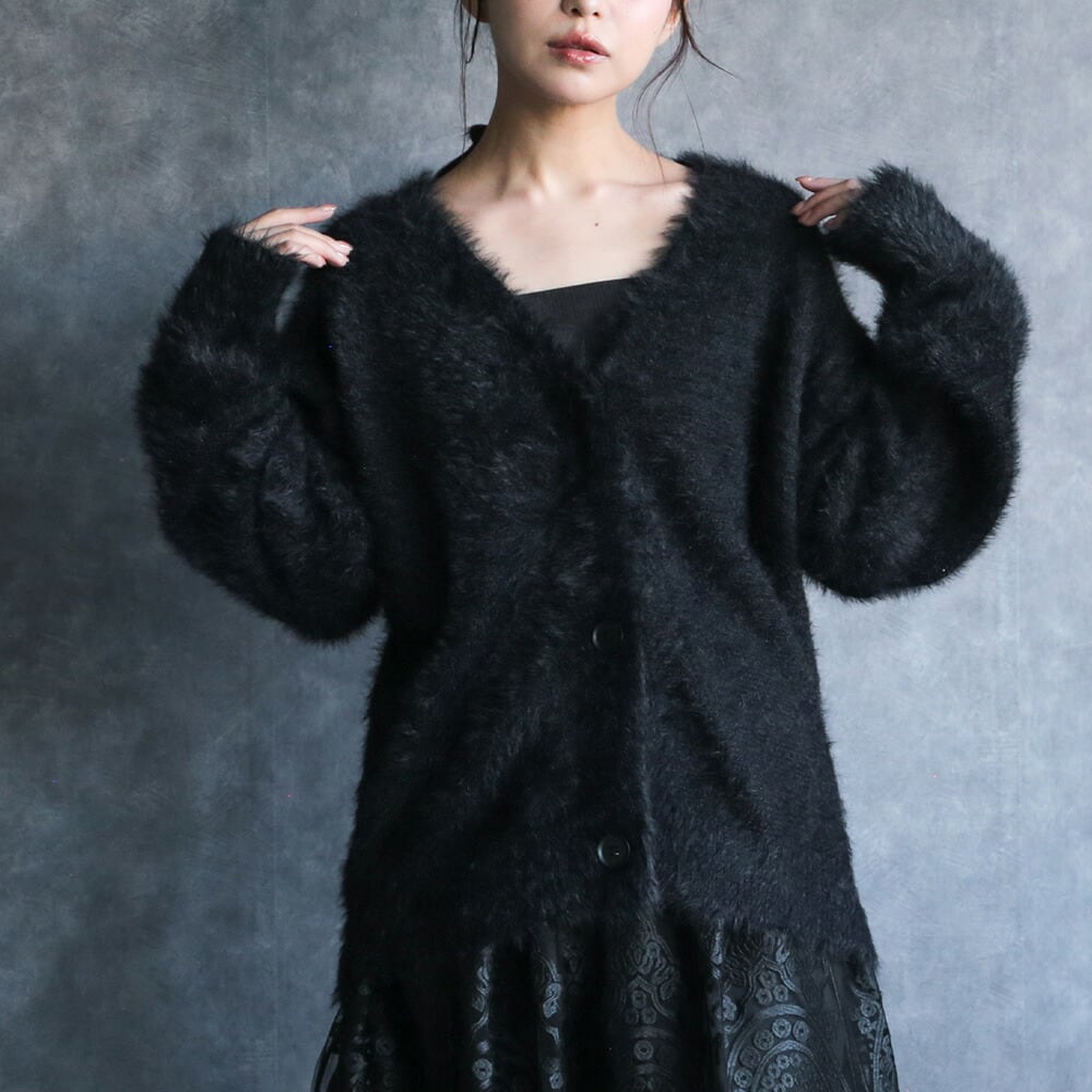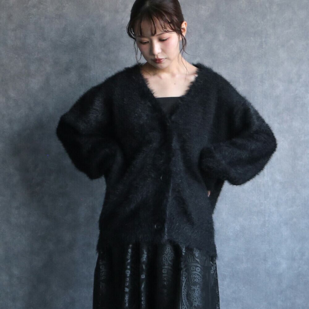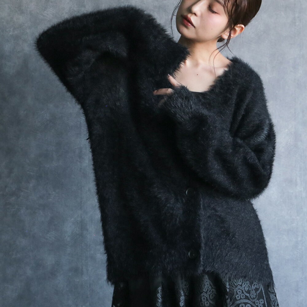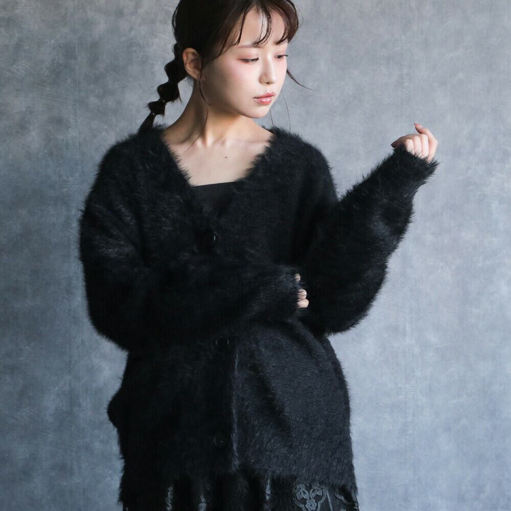 330085 any day エニーデイ カーディガン ニット もこもこ ふわふわ レディース リュクスシャギーカーディガン 長袖 Vネック アウター トップス 羽織 羽織り 大人 ゆったり カジュアル シンプル ブラック 黒 秋冬 送料無料