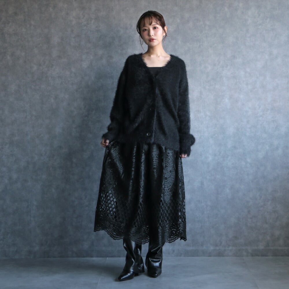 ニットカーディガン シャギーカーニット ニットトップス 体型カバー 大きいサイズ 秋 冬 あったか アウター 長袖 無地 シンプル
