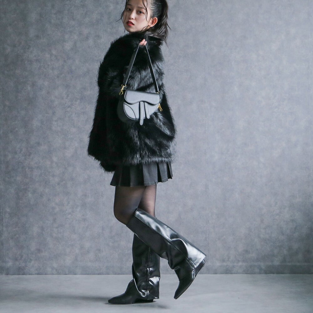 440012 any day エニーデイ ブーツ ロングブーツ 痛くない 歩きやすい 靴 柔らかい フェイクレザー 合皮 ポインテッドトゥ ウェッジヒール ロング丈 レッグウォーマー ルーズ モード かわいい カジュアル 美脚 おしゃれ 送料無料