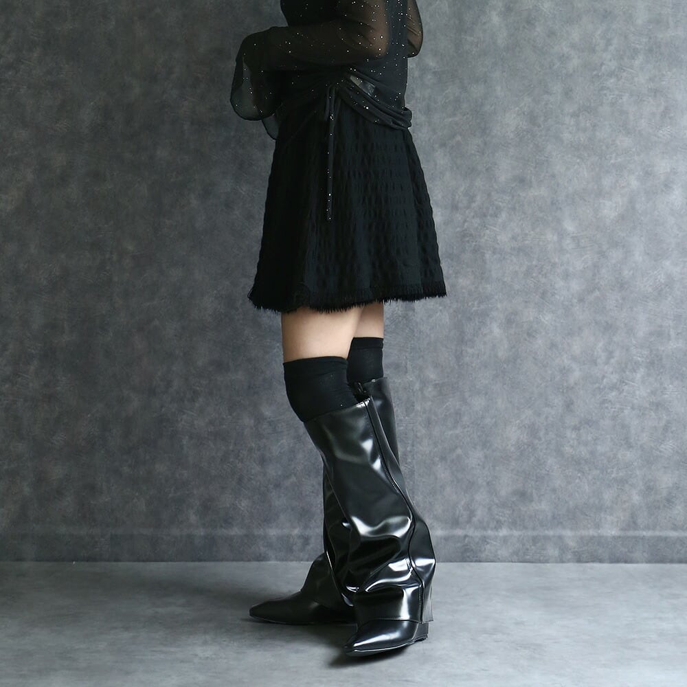 ブーツ ロングブーツ 痛くない 歩きやすい 靴 柔らかい 合皮 ポインテッドトゥ ウェッジヒール ルーズ モード かわいい 美脚 おしゃれ