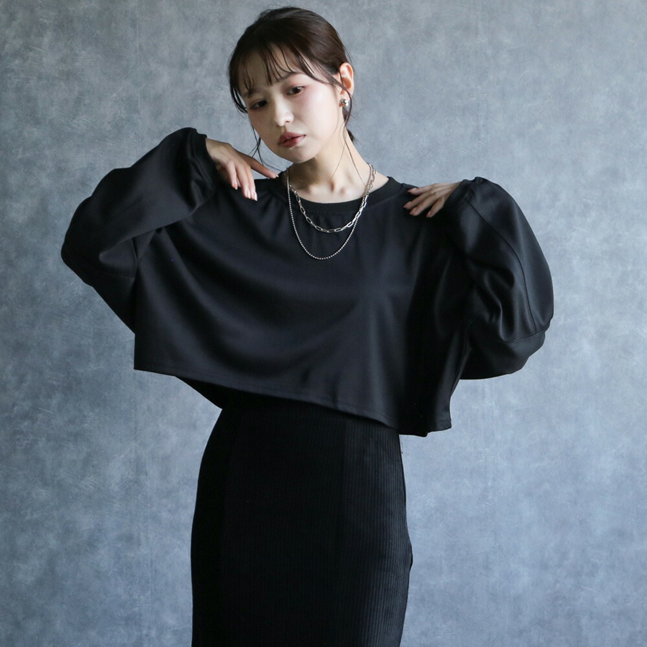オーバーサイズ×クロップド丈は、細見えの鉄板。