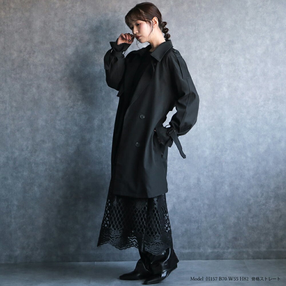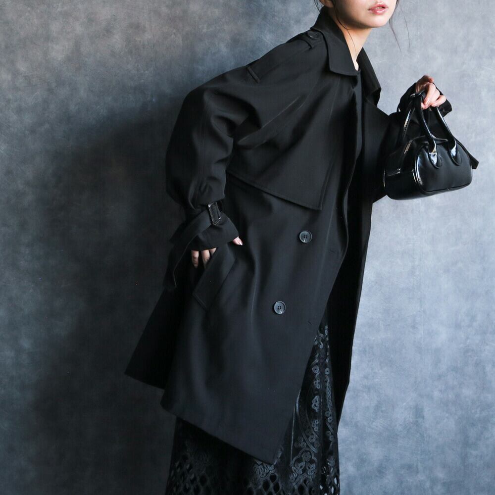 330094 any day エニーデイ トレンチコート レディース ミドル丈 キャンディースリーブトレンチコート ウエストベルト 春 秋 冬 コート アフター ブラック 黒 シンプル カジュアル 通勤 結婚式 フォーマル ビジネス OL 送料無料
