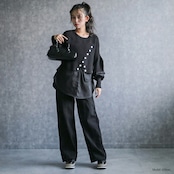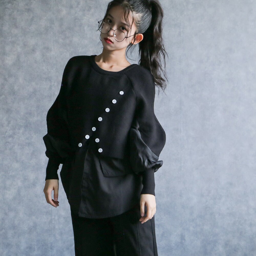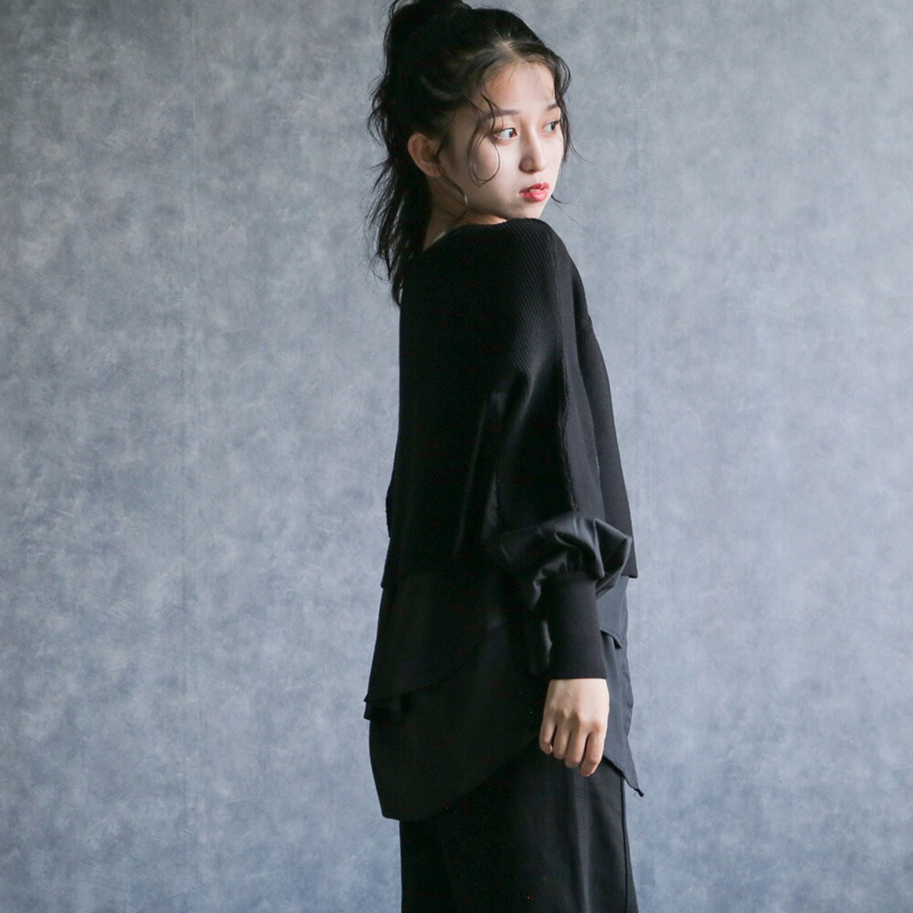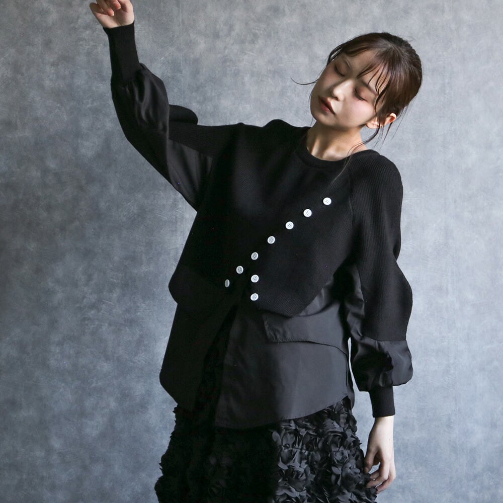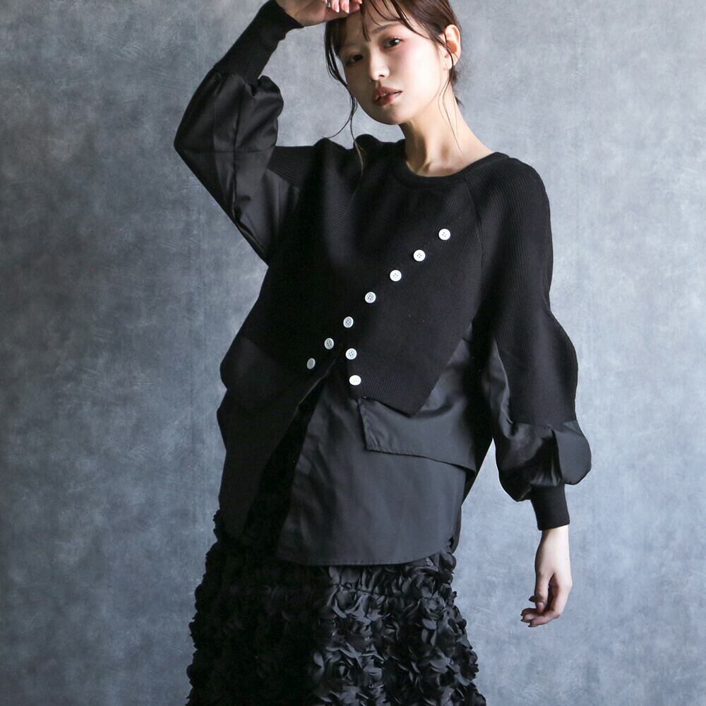 330095 any day エニーデイ トップス ニット セーター レディース シャツ ドッキング シャツドッキングニットプルオーバー プルオーバー シャツレディース 長袖 黒 大人 きれい オフィスカジュアル 送料無料