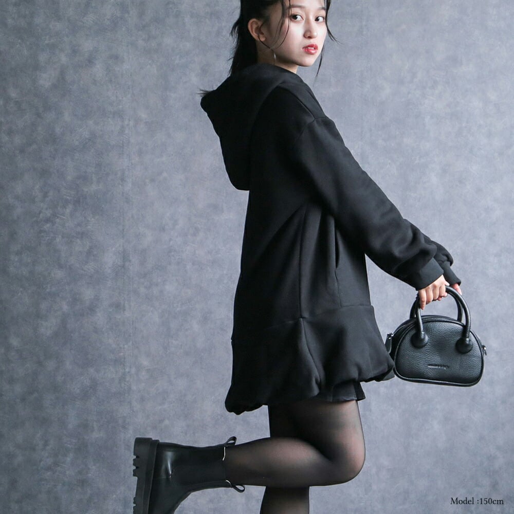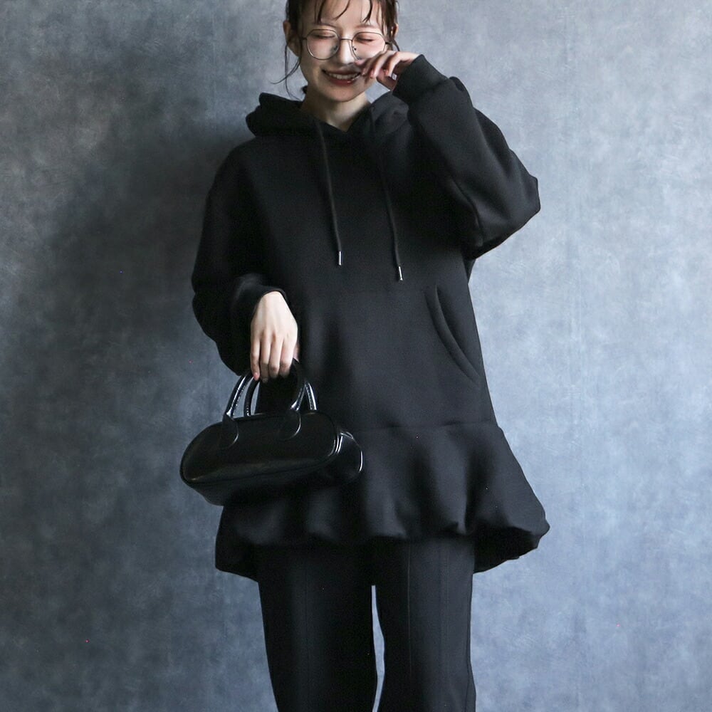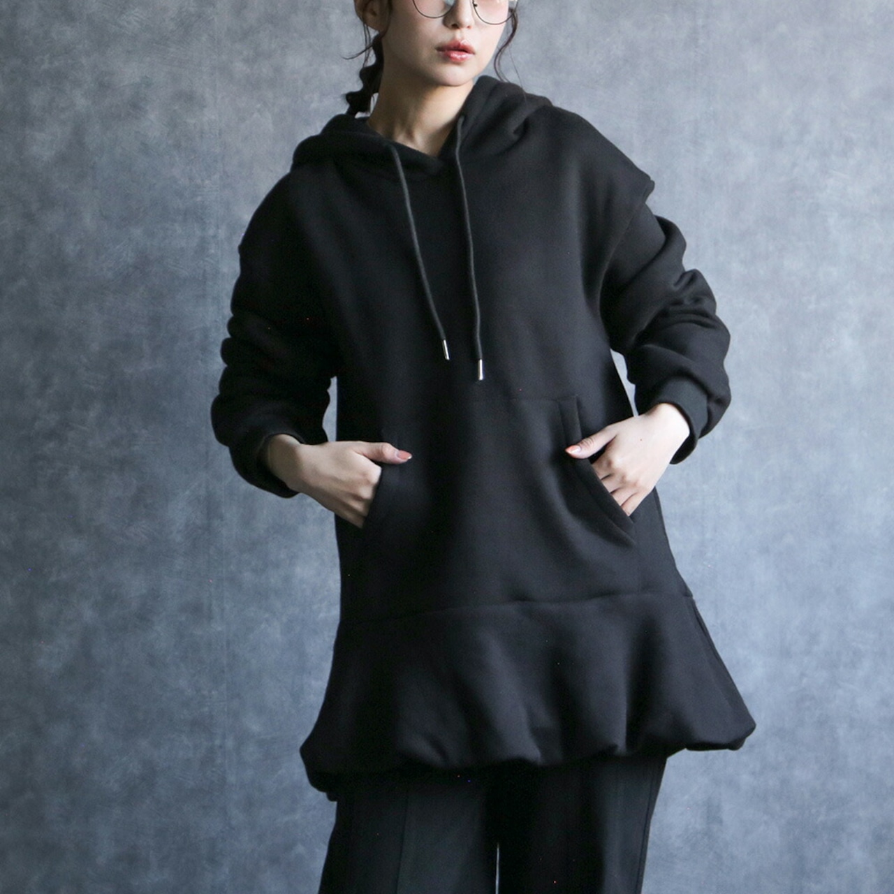 330096 any day エニーデイ イパーカー あったか トレーナー 無地 黒 レディース バルーンヘムロングパーカー スウェット フーディー トップス 長袖 ポケット付き カジュアル 厚手 ゆったり 裏起毛 プルオーバー シンプル お尻が隠れる 送料無料