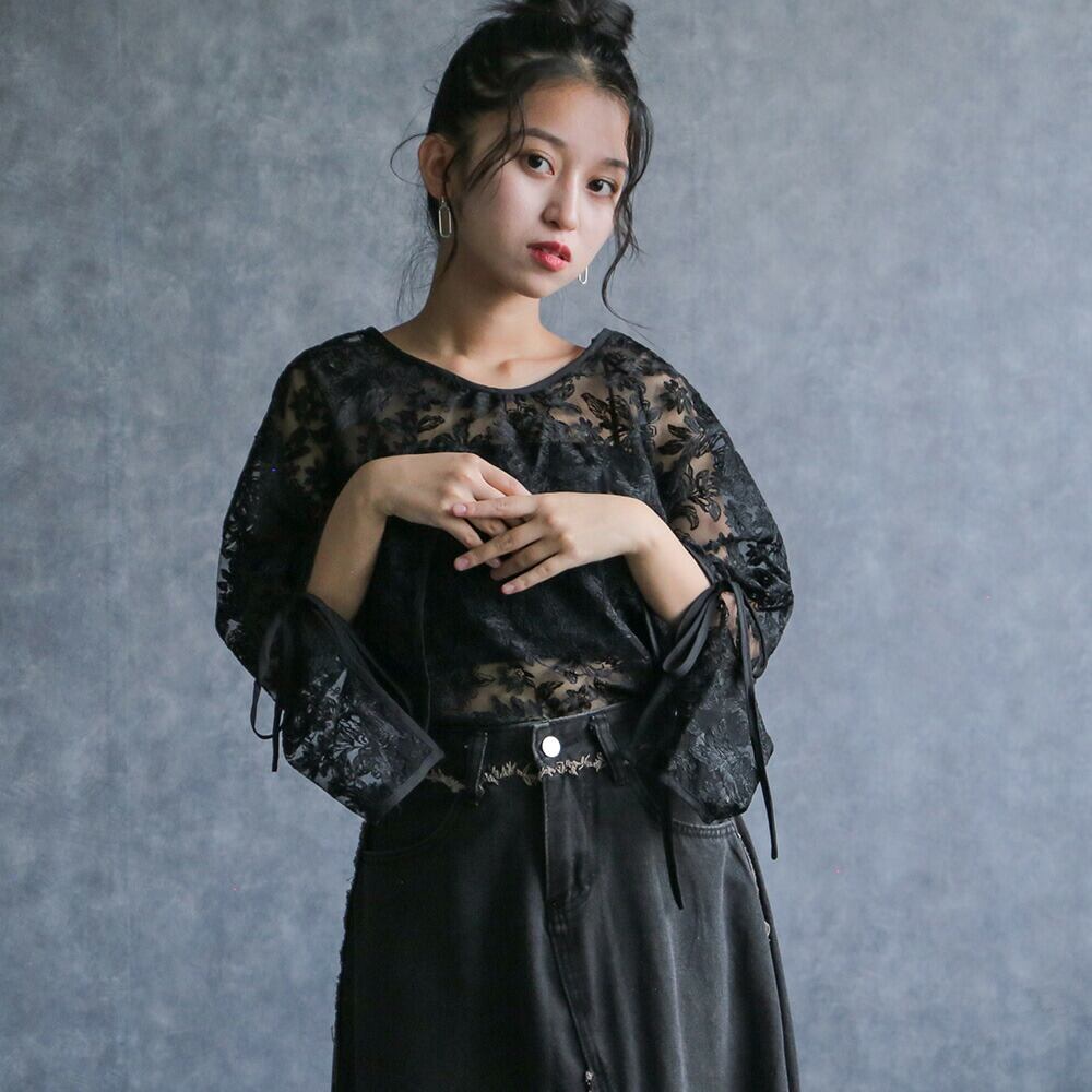 ブラウス トップス レース 長袖 おしゃれ 黒 カーディガン シースルー 重ね着 レイヤード レディース オケージョン 2way