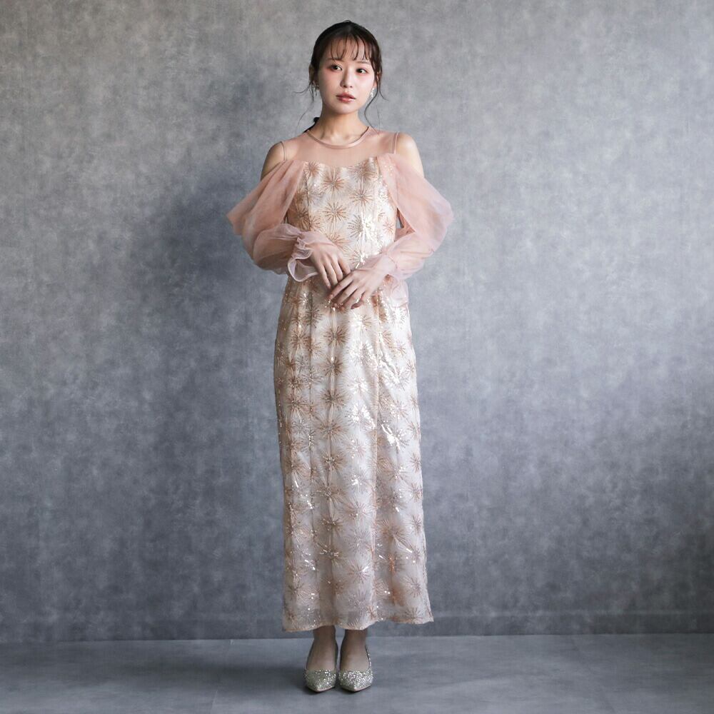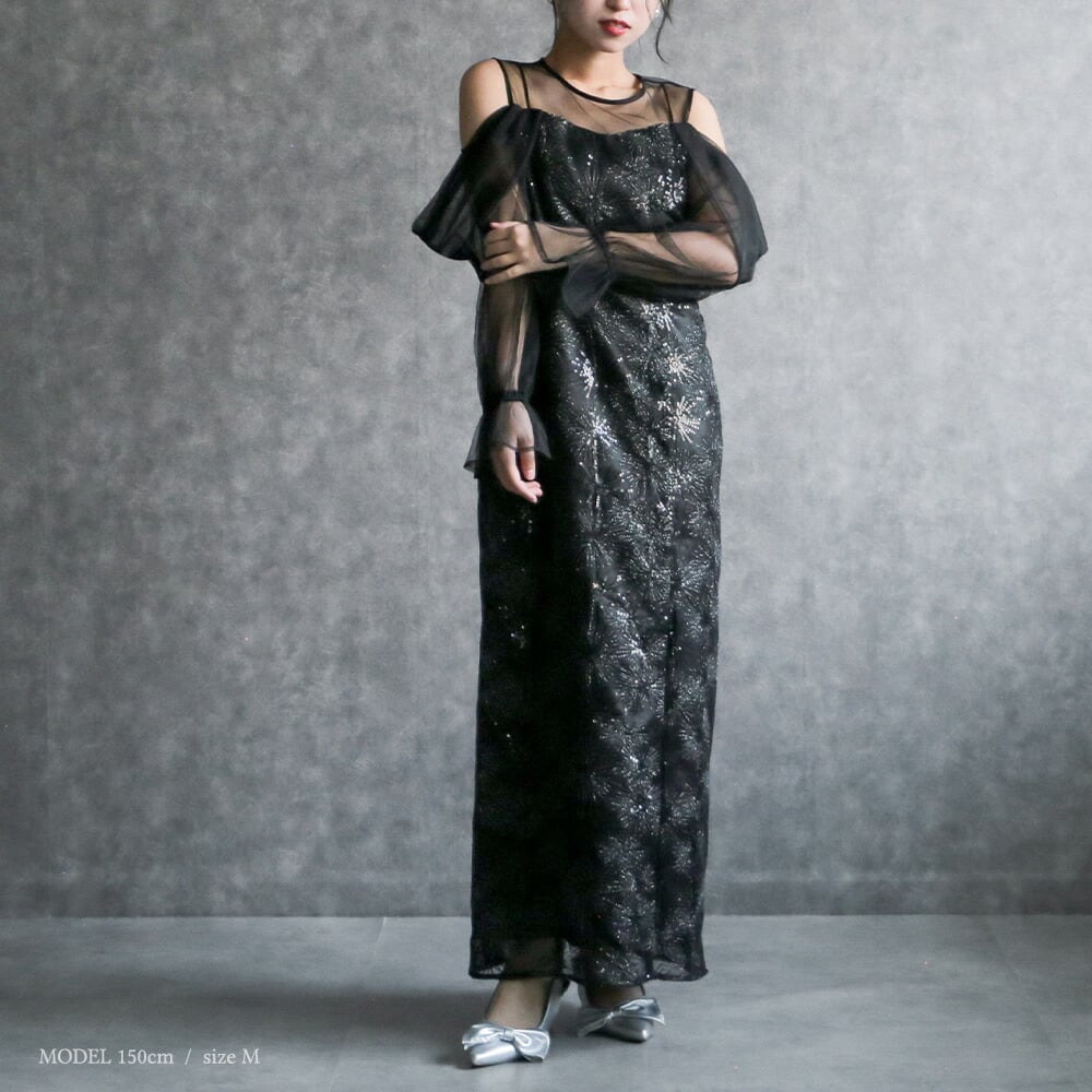 300191 epic day エピックデイ結婚式 ドレス オケージョン お呼ばれ チュールオフショルイルミナドレス スパンコール オフショルダー 長袖 パーティー 成人式 入学式 卒業式 二次会 食事会 女子会 他と被らない ワンピース 送料無料