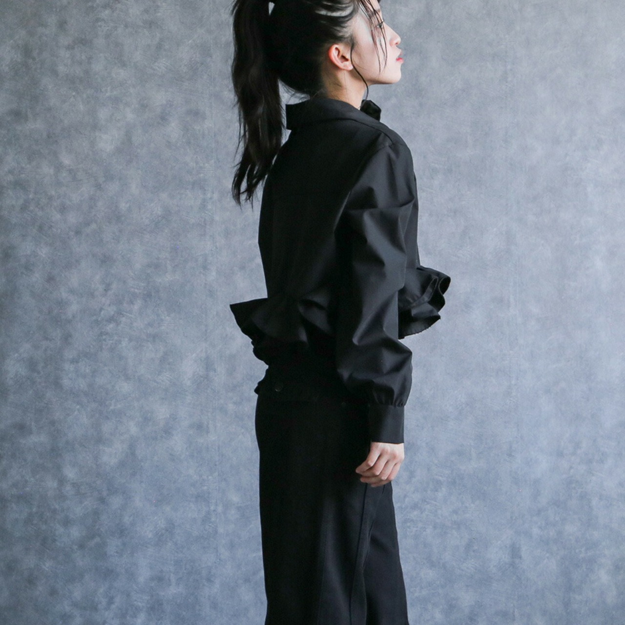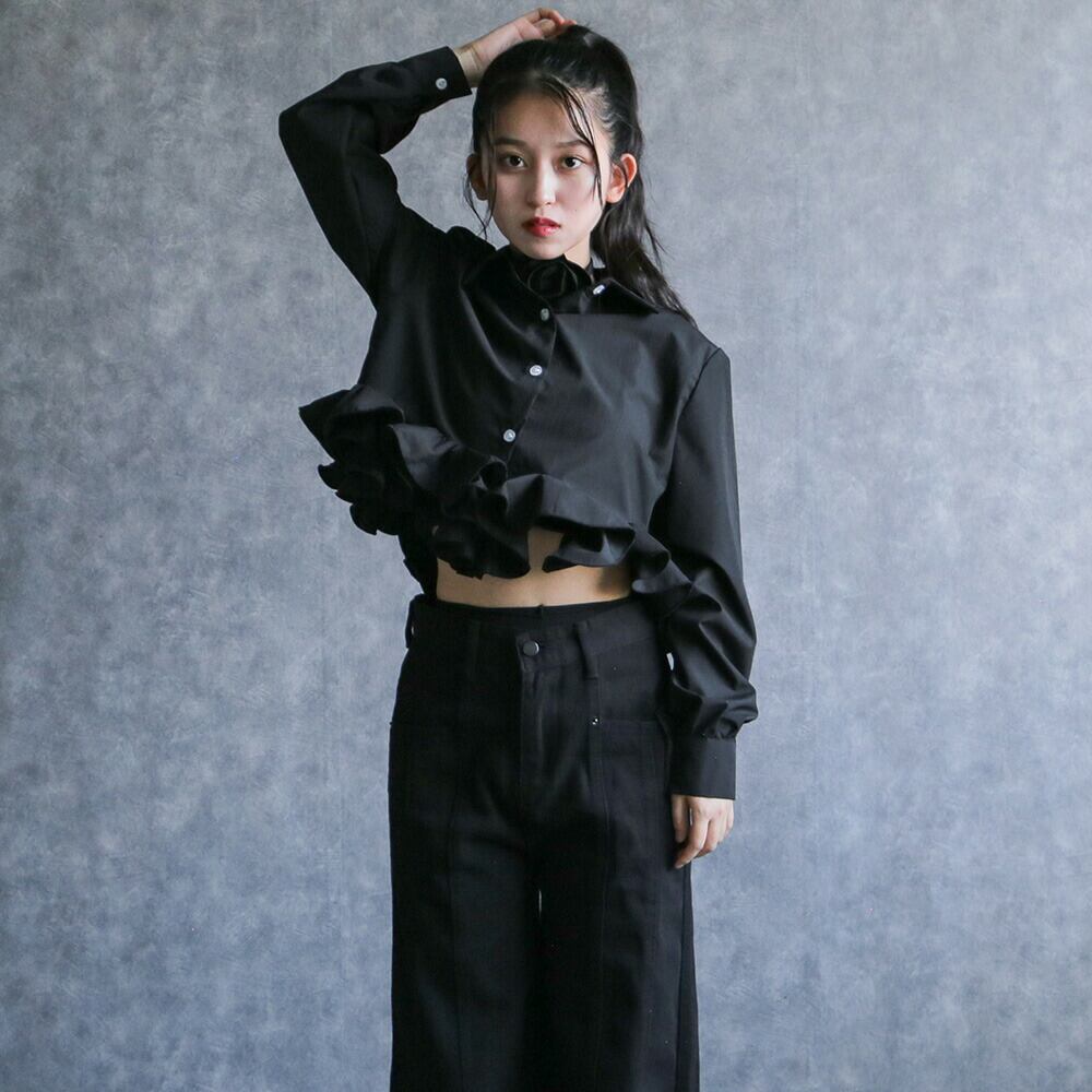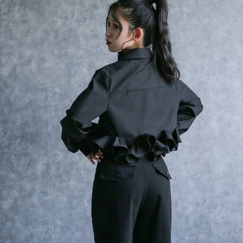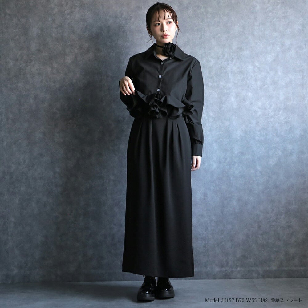 ショート丈シャツ ローズチョーカーネックレス トップス 黒 ブラック フォーマル おしゃれ かわいい フリル 体型カバー