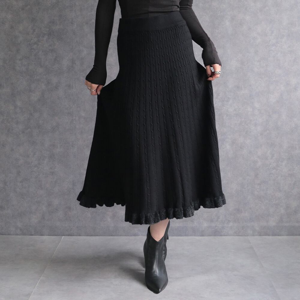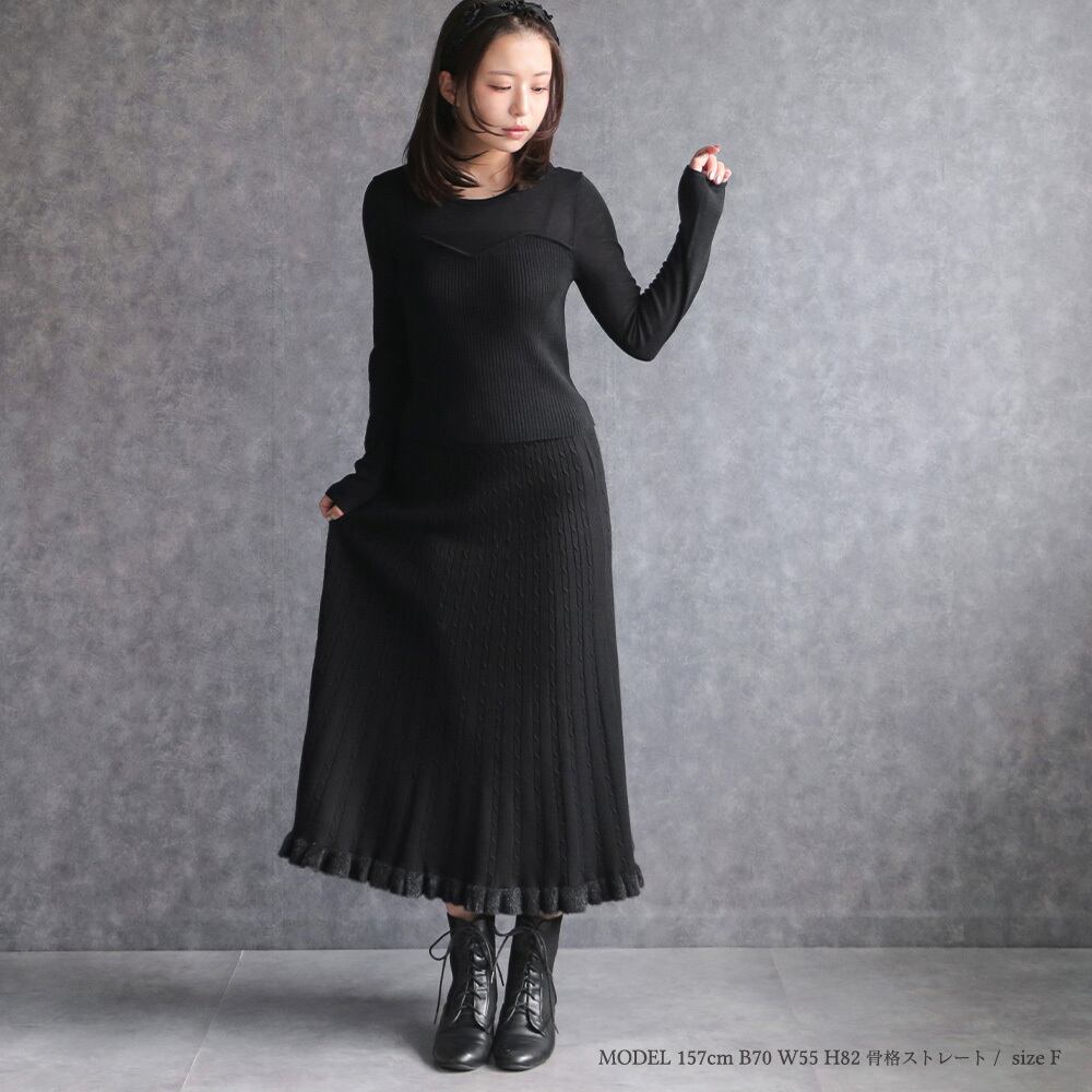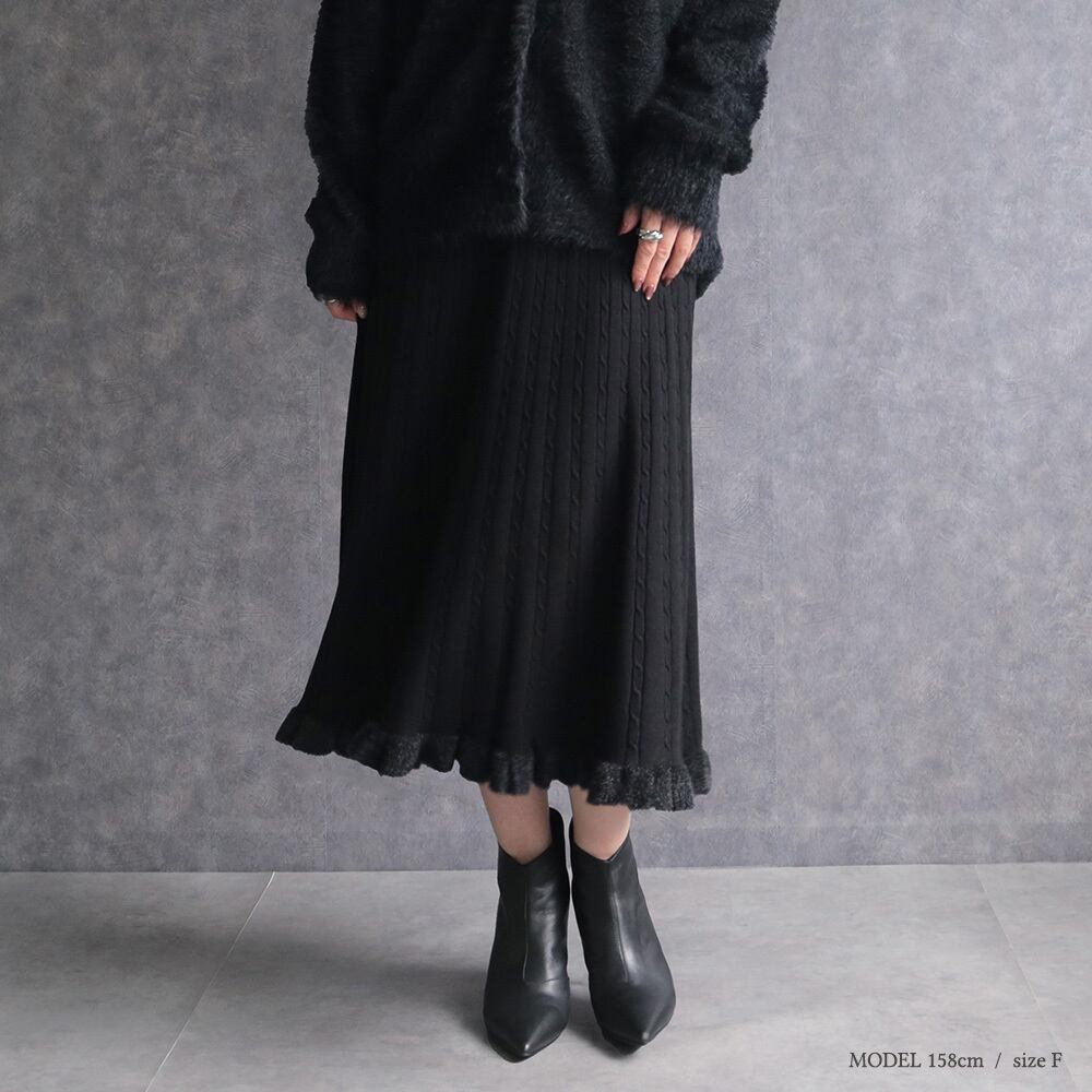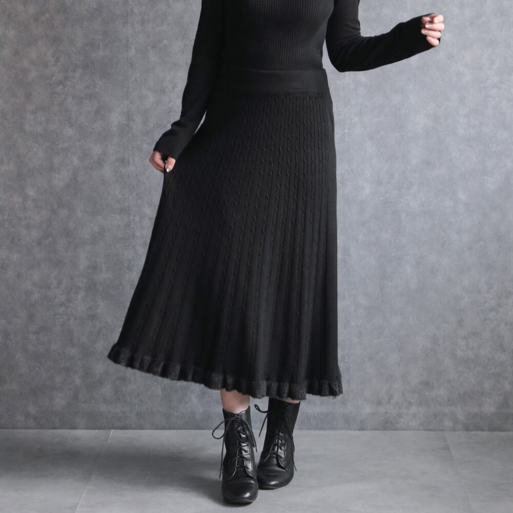 330108 any day エニーデイ フレアスカート ニットスカート ロング リブニット メロー リブニットメローフレアスカート ボトムス ウエストゴム ブラック ストレッチ 楽ちん 秋 冬 送料無料