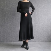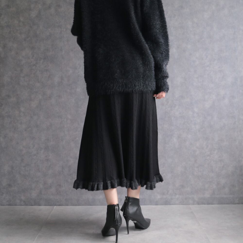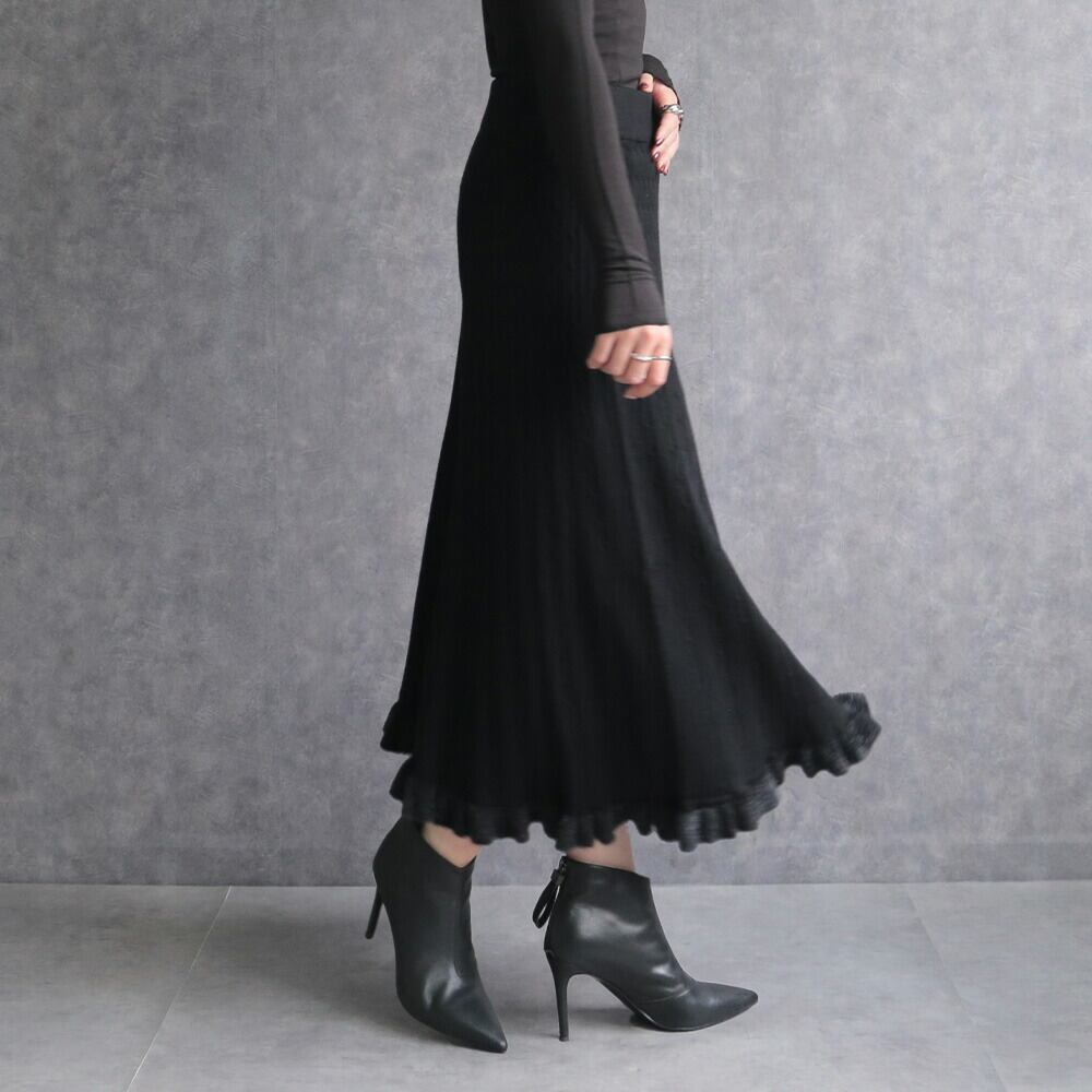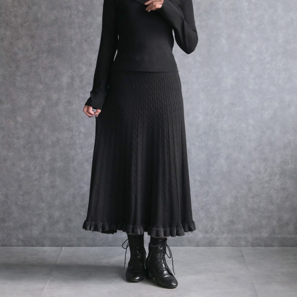 330108 any day エニーデイ フレアスカート ニットスカート ロング リブニット メロー リブニットメローフレアスカート ボトムス ウエストゴム ブラック ストレッチ 楽ちん 秋 冬 送料無料