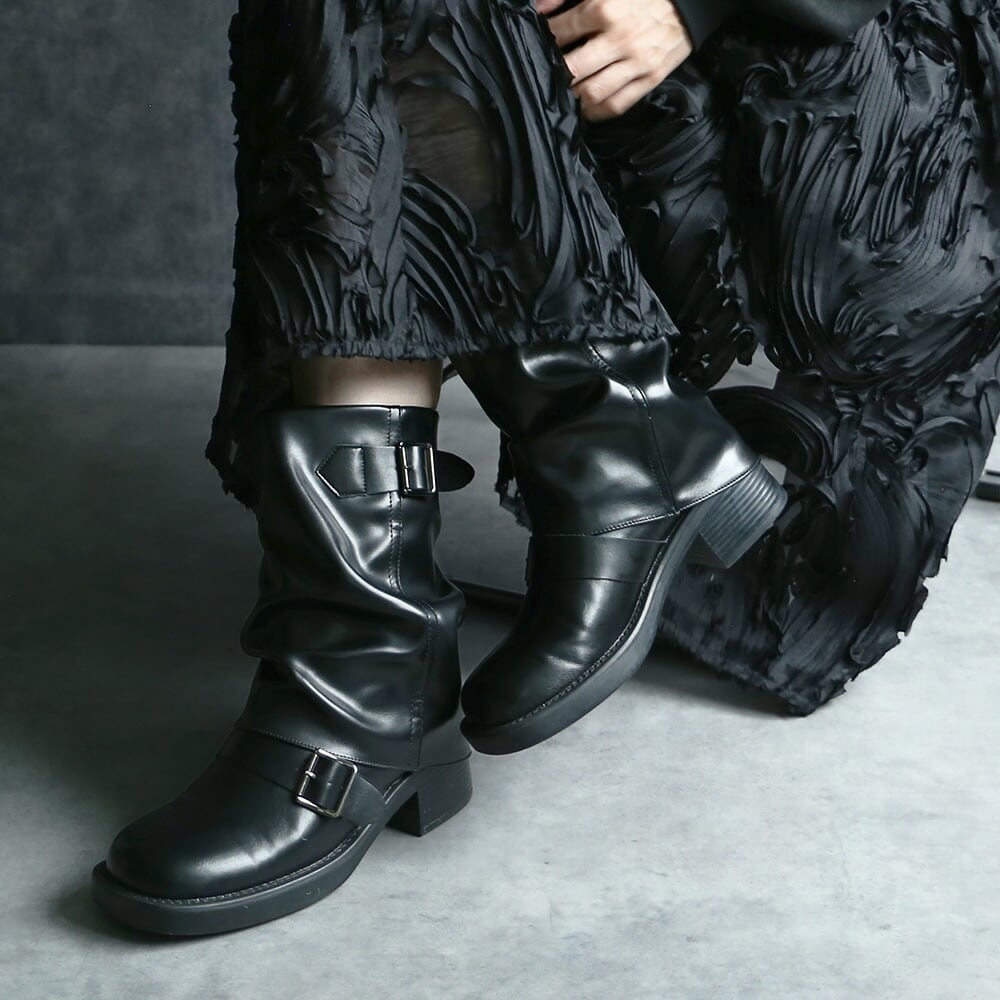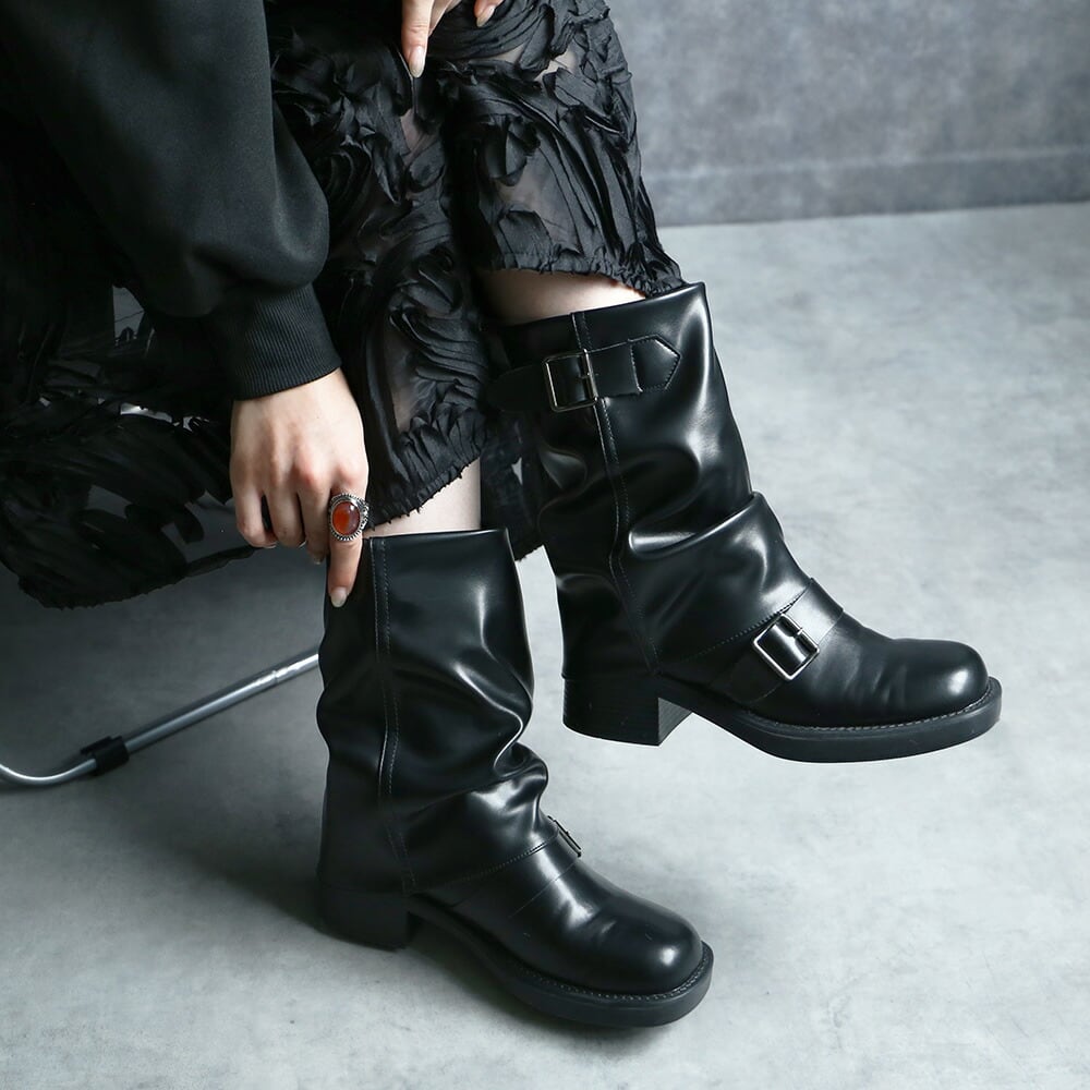 440011 any day エニーデイ ブーツ 靴 レディース エンジニアブーツ 低反発 軽量 ルーズ レッグカバー風 ミドルブーツ ローヒール 5cmヒール ラウンドトゥ おしゃれ 痛くない 歩きやすい 靴 柔らかい 合皮 秋 冬 20代 30代 40代 送料無料