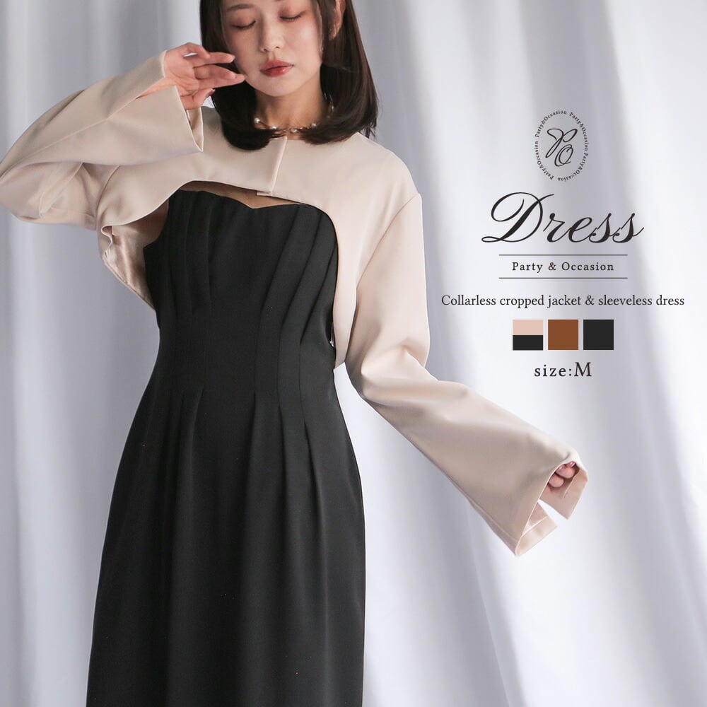 300193 epic day エピックデイパーティードレス 結婚式 セットアップ ドレス ジャケット ノーカラークロップドジャケット&ノースリーブドレス 長袖 シンプル 着痩せ パーティー 二次会 披露宴 成人式 同窓会 お呼ばれドレス 20代 30代 40代 送料無料