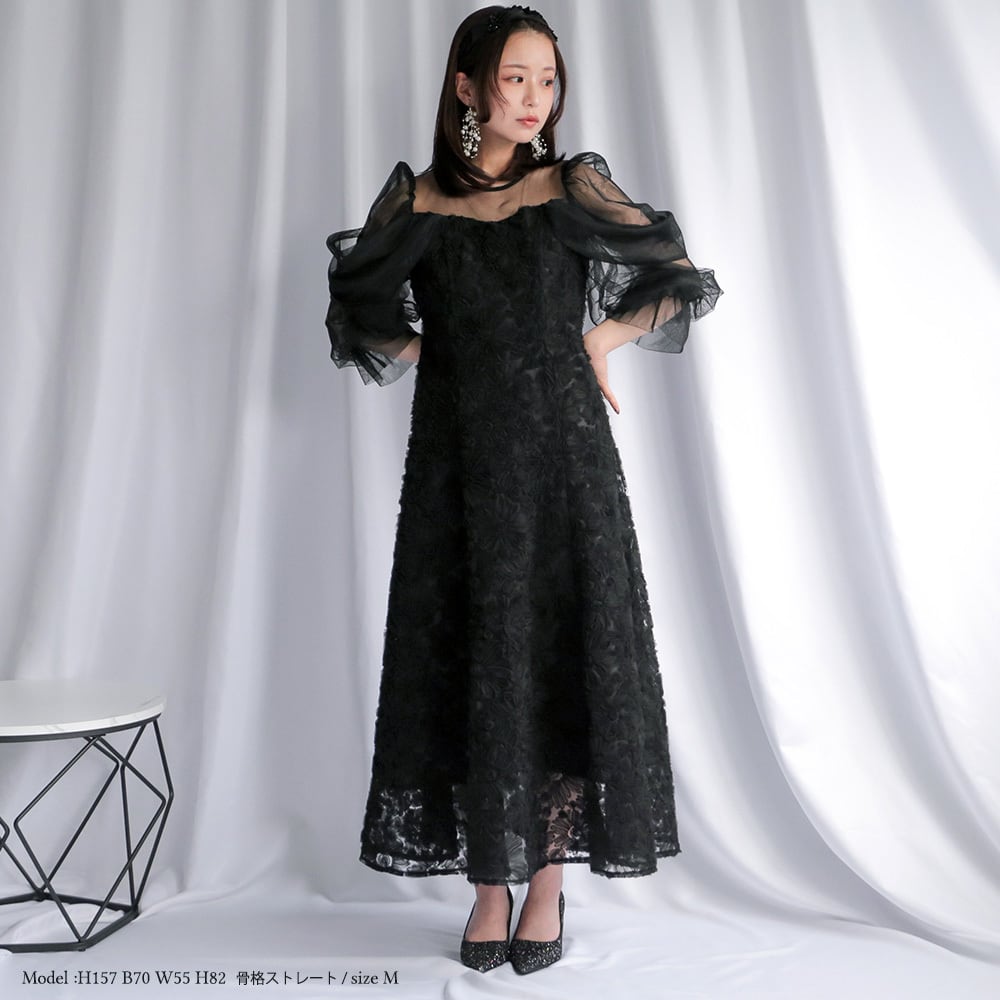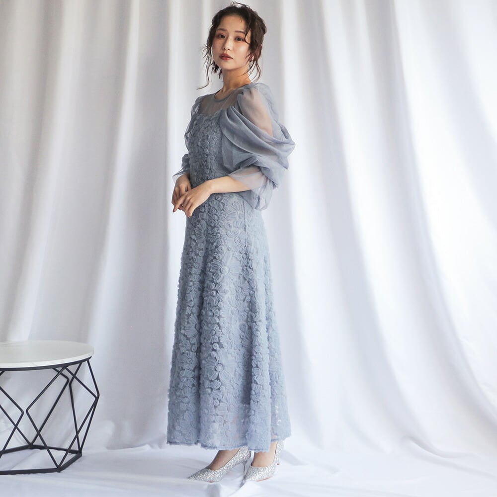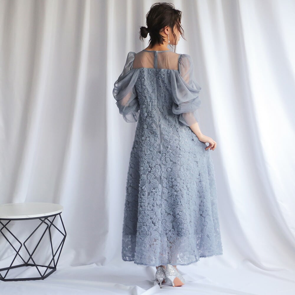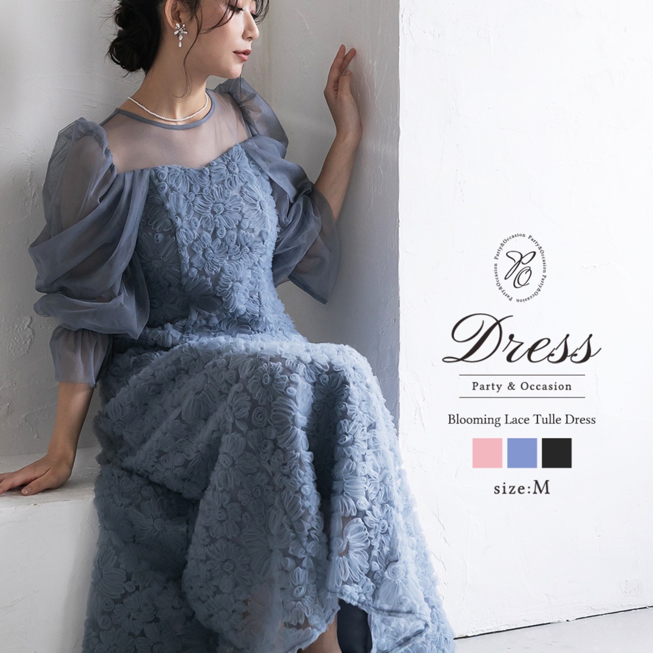 300196 epic day エピックデイ結婚式 ドレス オケージョン お呼ばれ ブルーミングレースチュールドレス オフショル フレアスカート チュール刺繍 花柄 長袖 フォーマル パーティー 発表会 食事会 発表会 二次会 披露宴 成人式 かわいい ワンピース 20代 30代 送料無料