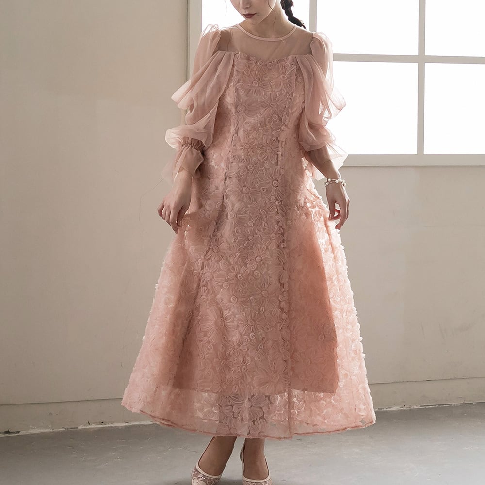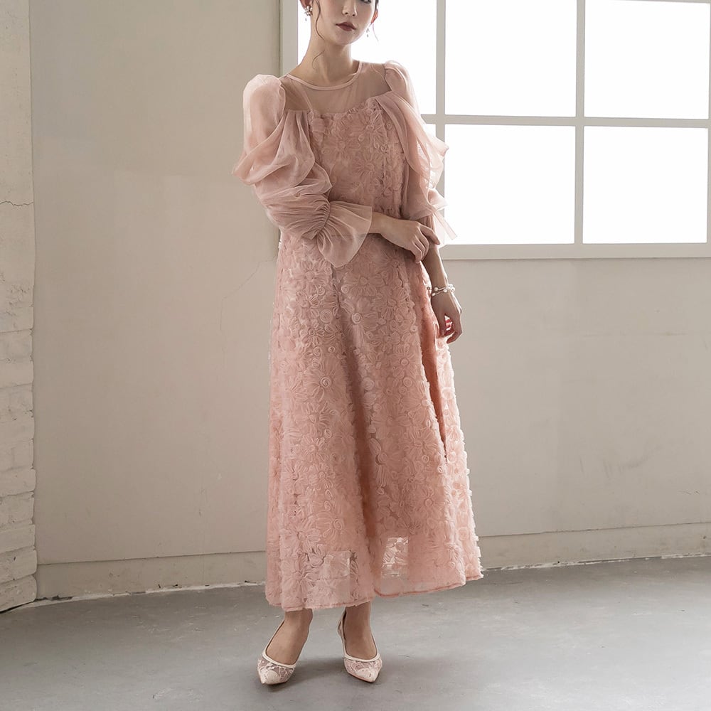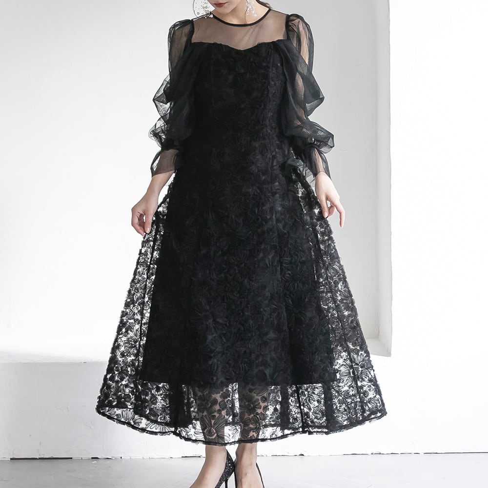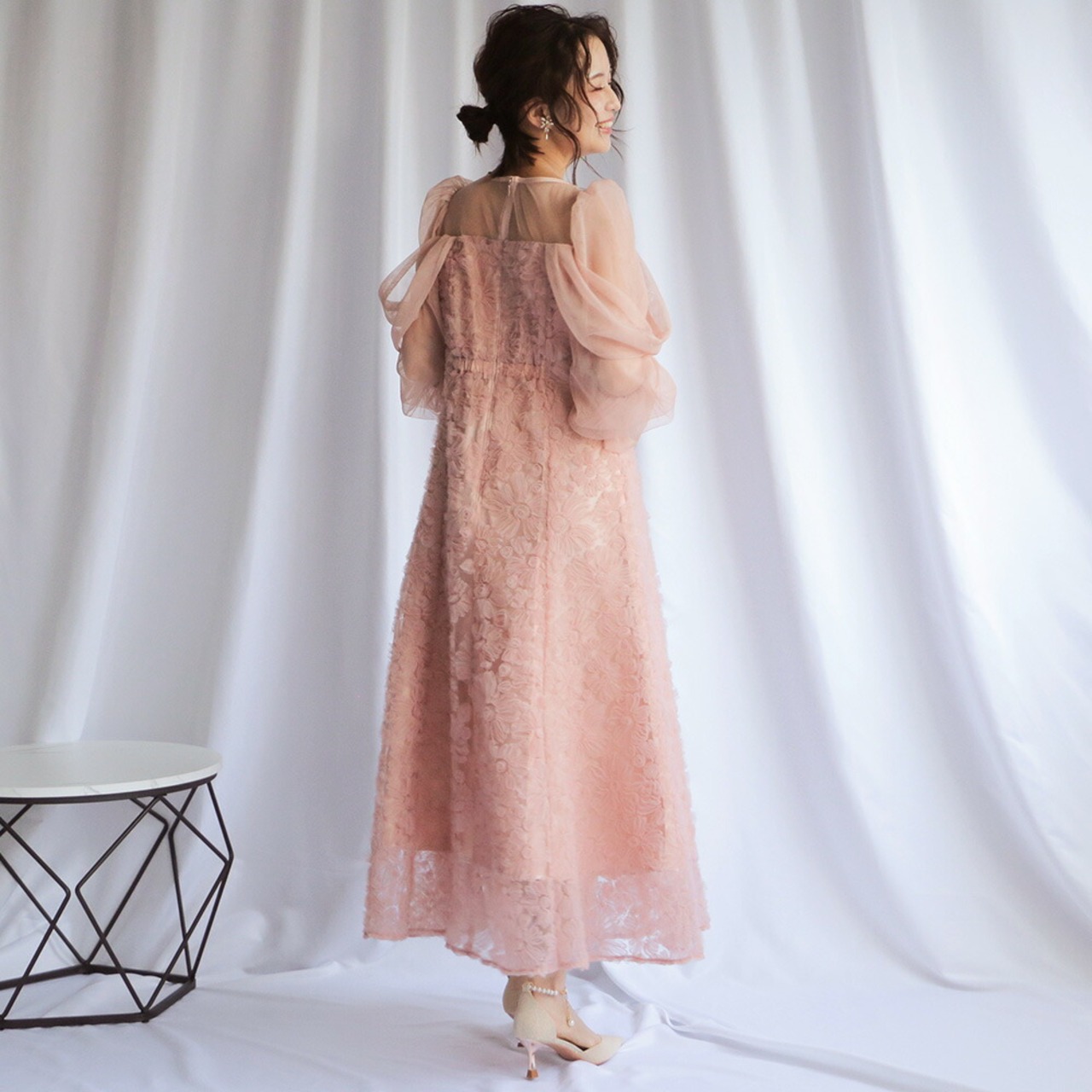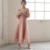 300196 epic day エピックデイ結婚式 ドレス オケージョン お呼ばれ ブルーミングレースチュールドレス オフショル フレアスカート チュール刺繍 花柄 長袖 フォーマル パーティー 発表会 食事会 発表会 二次会 披露宴 成人式 かわいい ワンピース 20代 30代 送料無料