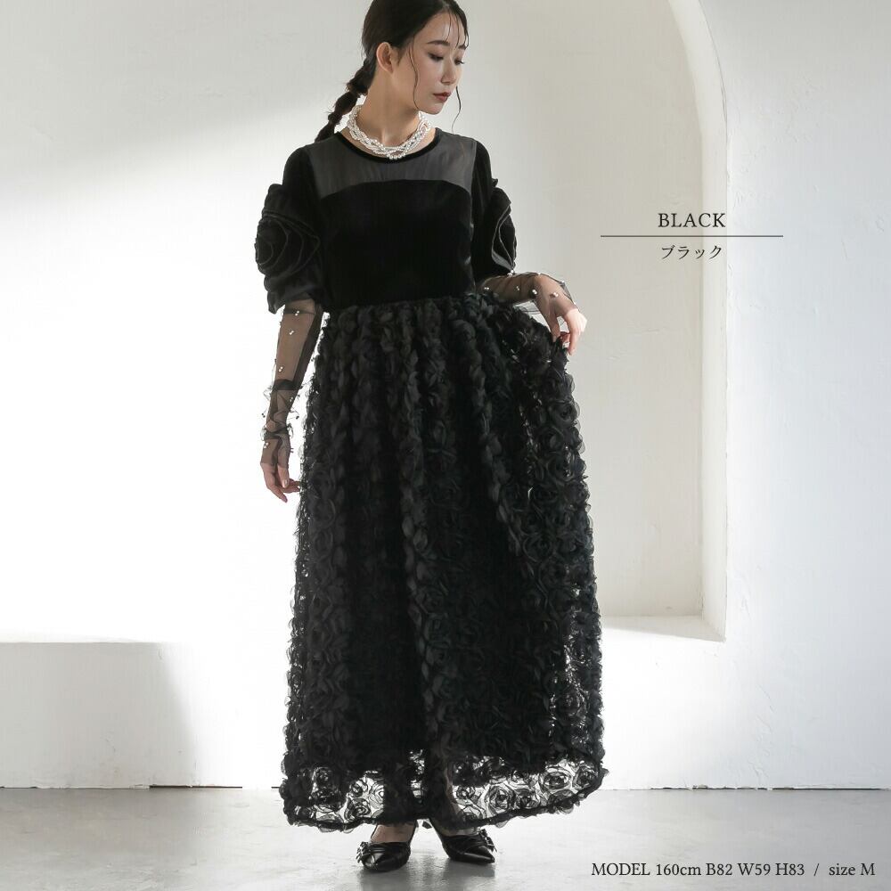 300194 epic day エピックデイ結婚式 ドレス お呼ばれ 秋冬 ベロア パーティー ドレス ロマンティックローズベロアドレス カラードレス バラ 薔薇 オケージョンワンピース 演奏会 発表会 二次会 成人式 女子会 送料無料