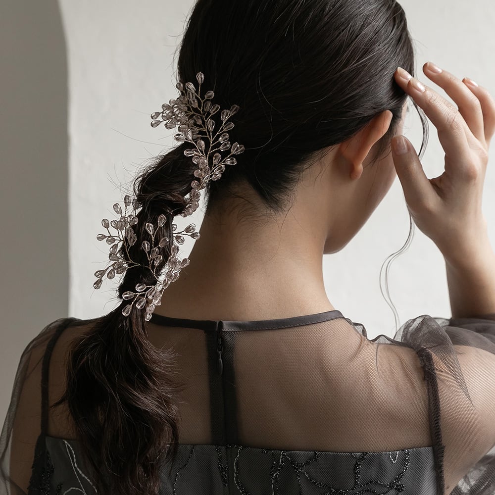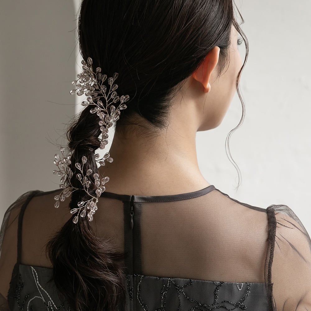 ヘアスタイルにそっと華やぎを添えてくれる。