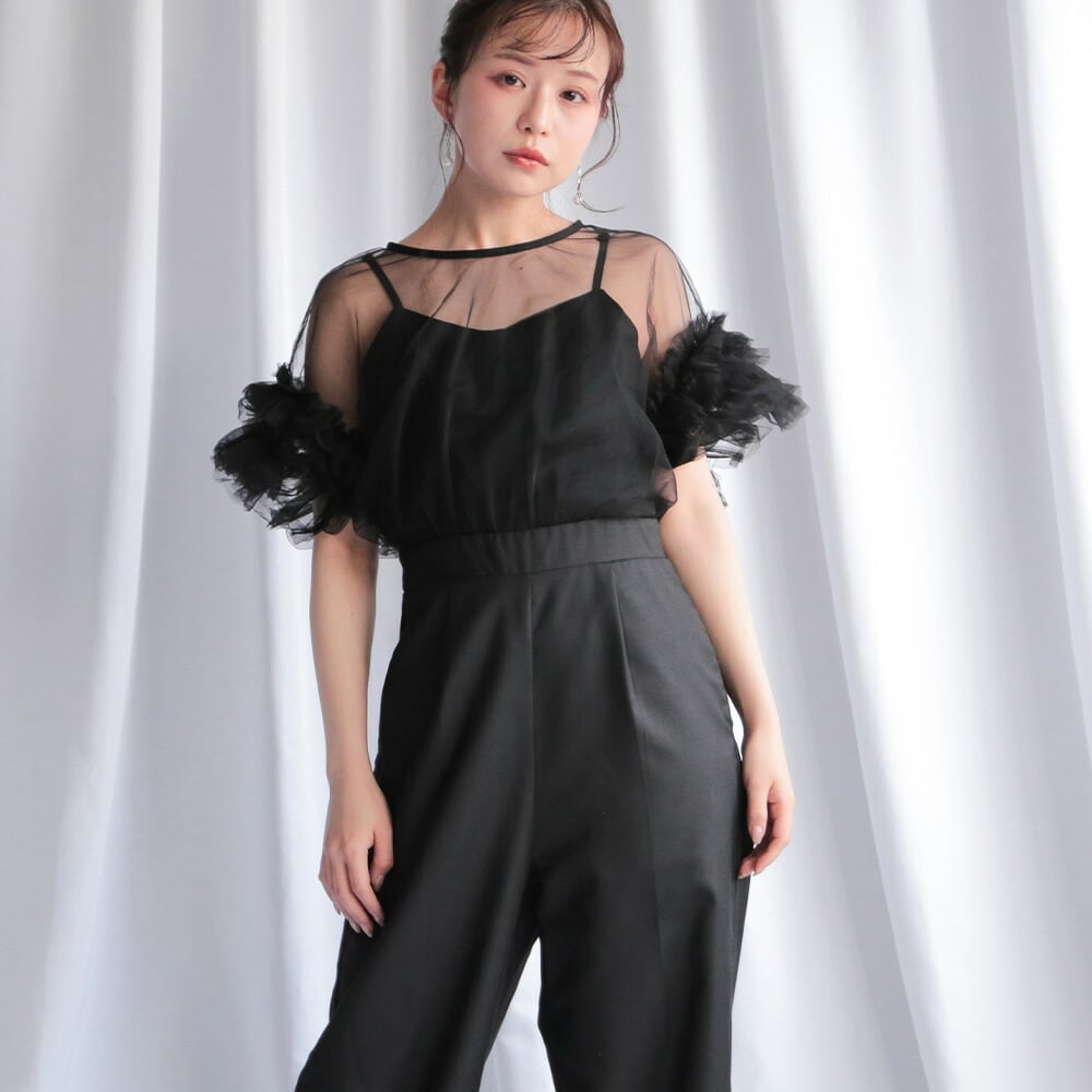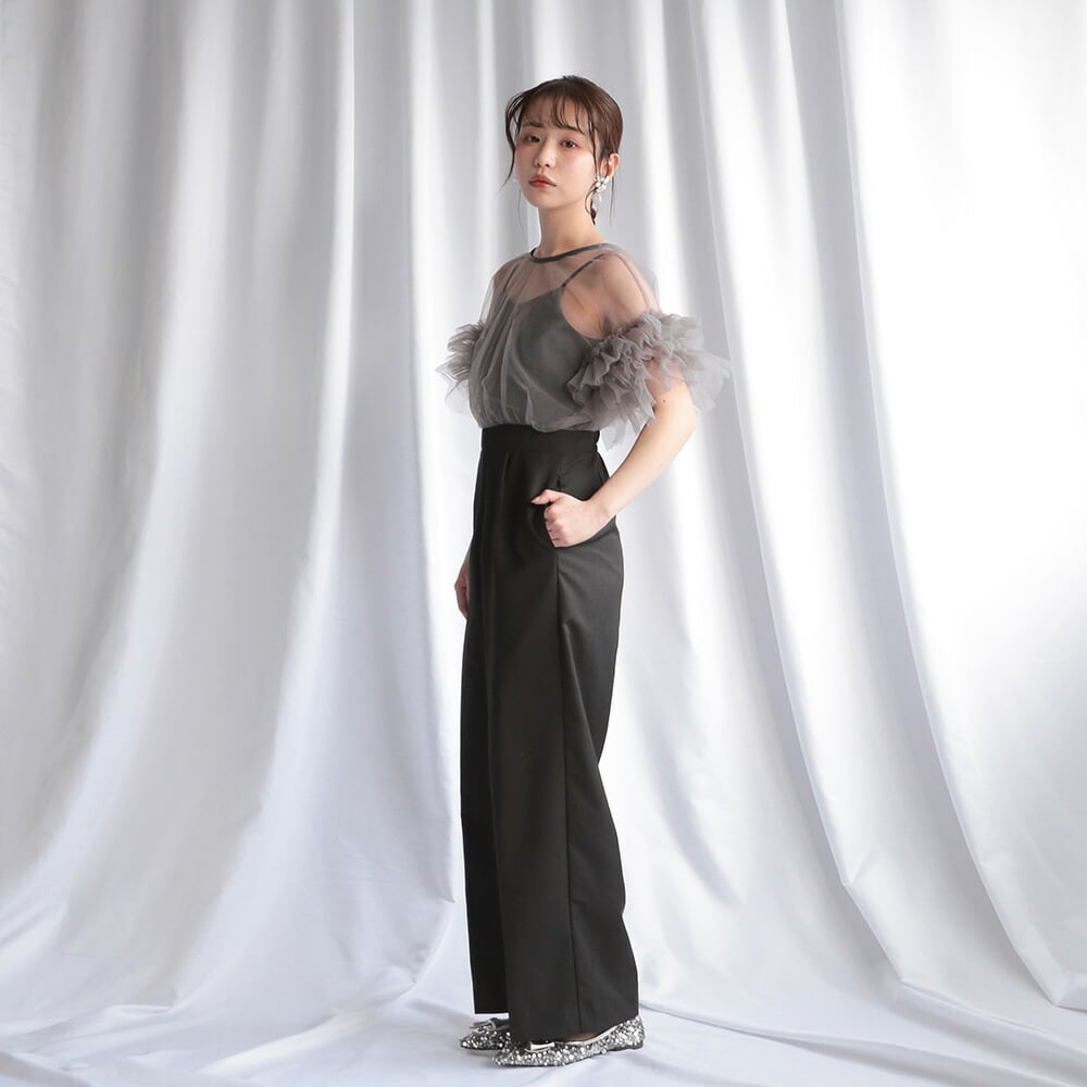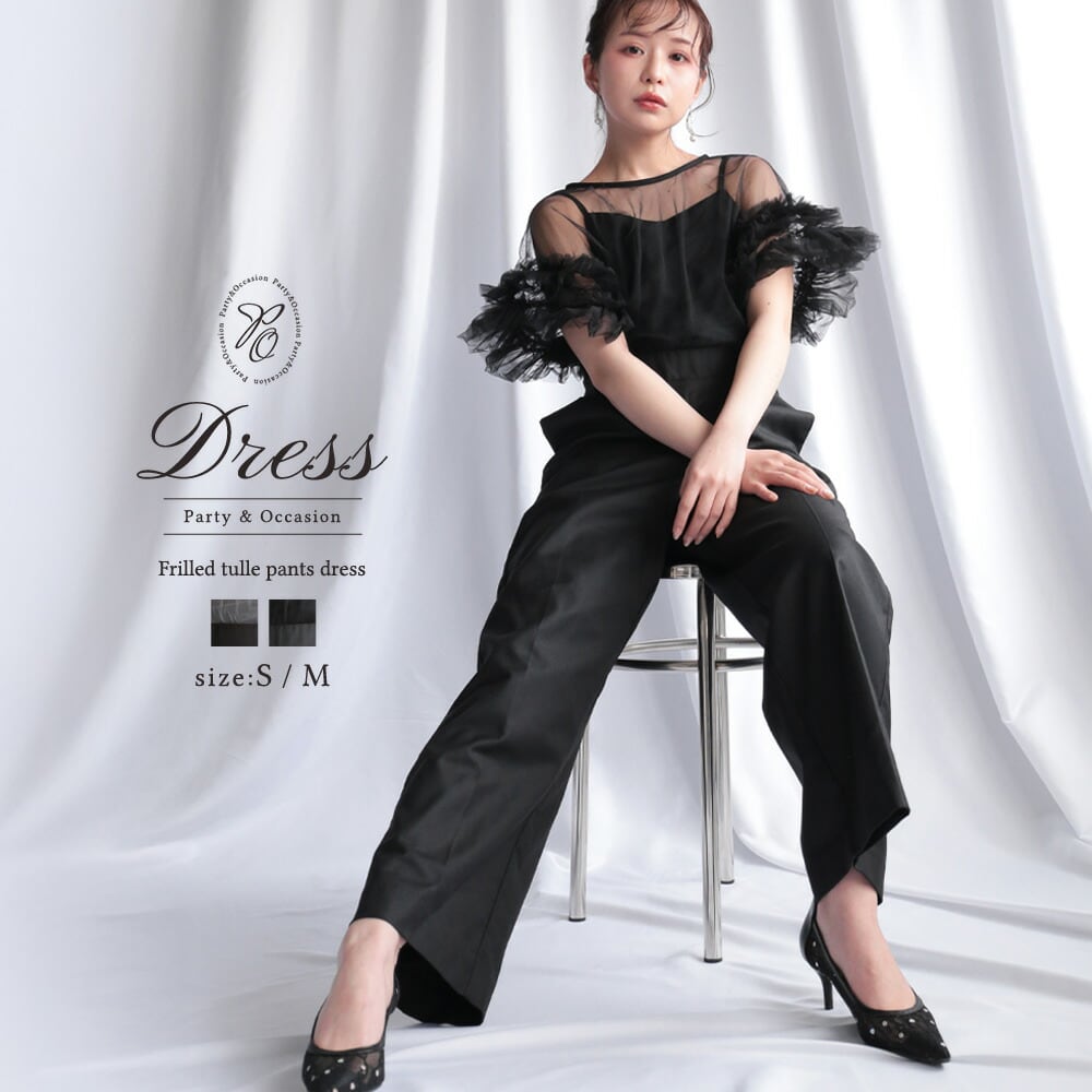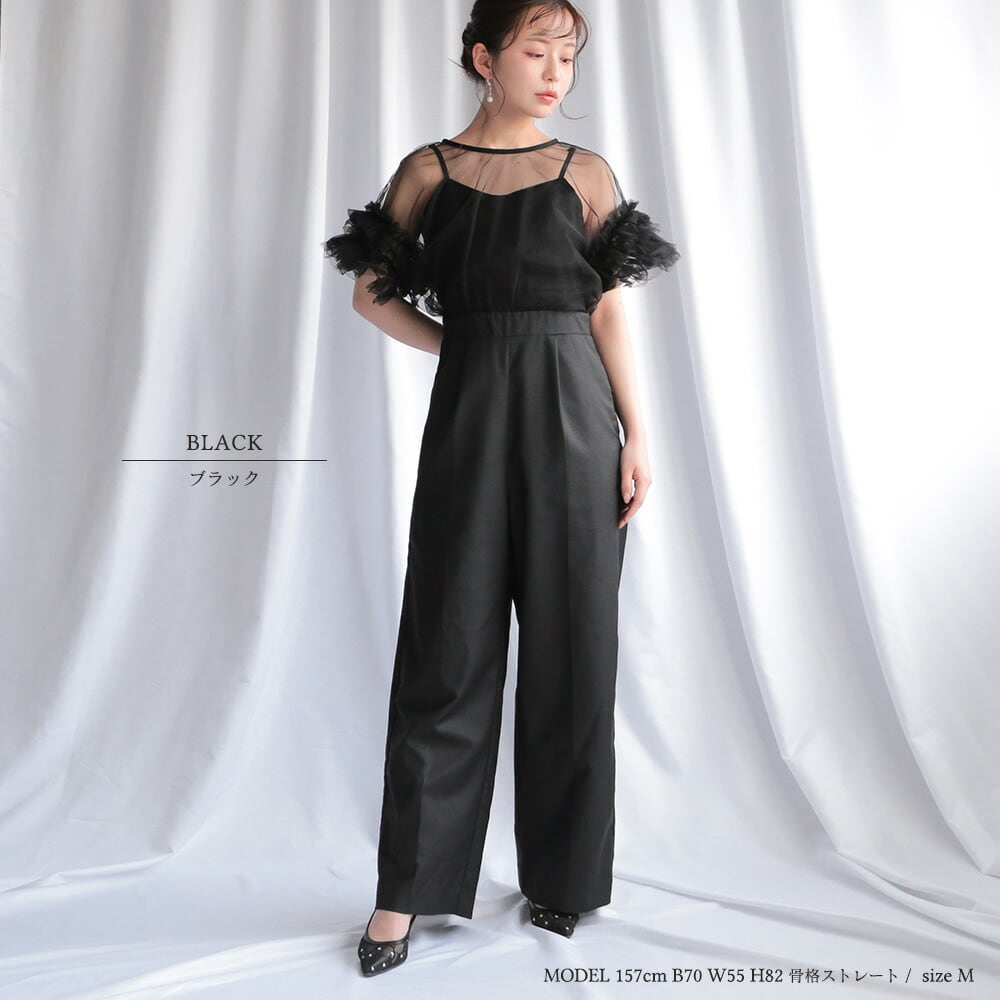 300203 epic day エピックデイドレス 結婚式 パンツ お呼ばれ パーティードレス オケージョン パンツドレス シアー フリル ウエストゴム 二次会 セレモニー ディナー 食事会 卒業式 入学式 上品 きれいめ 10代 20代 30代 送料無料