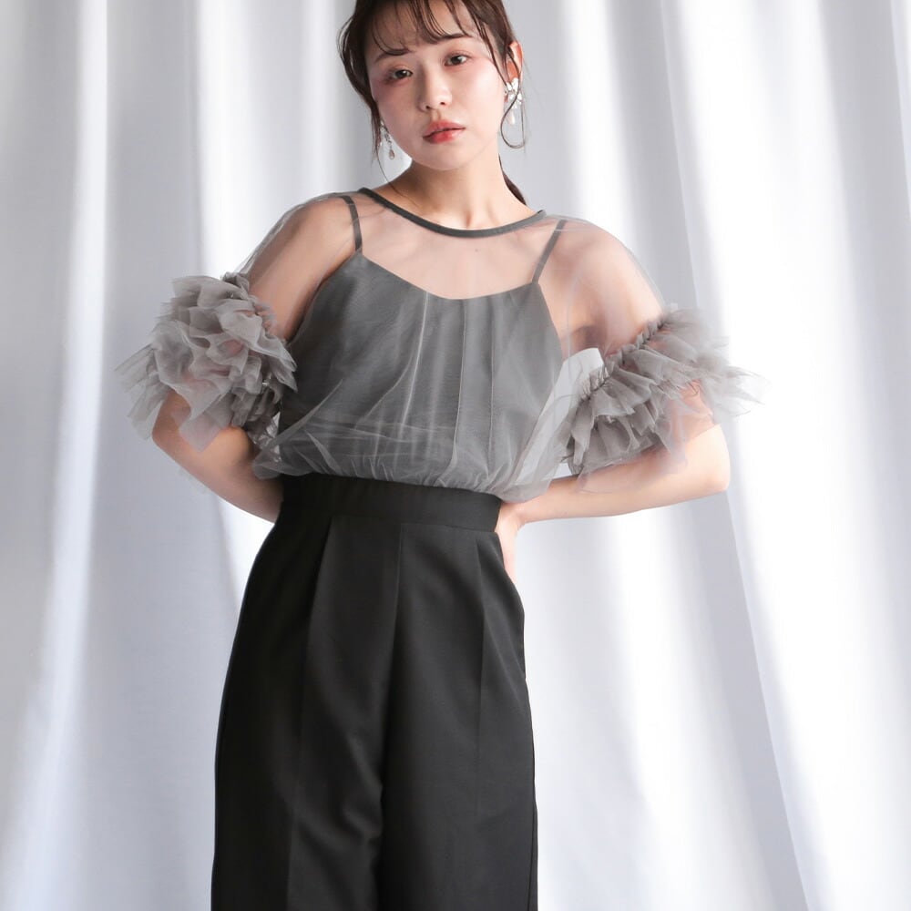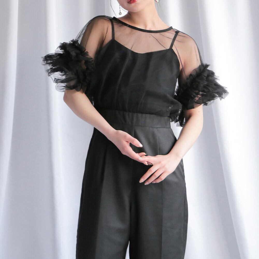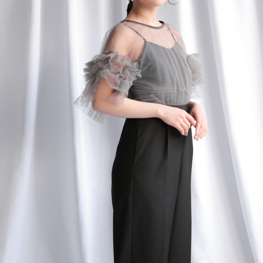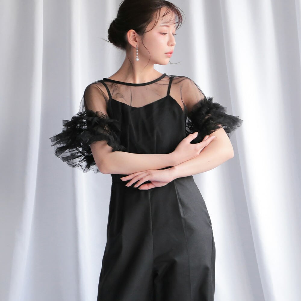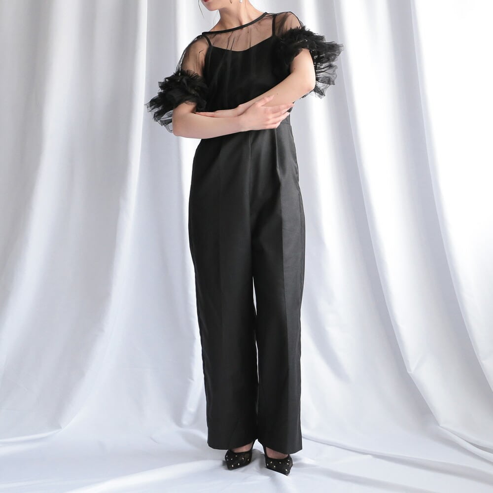 300203 epic day エピックデイドレス 結婚式 パンツ お呼ばれ パーティードレス オケージョン パンツドレス シアー フリル ウエストゴム 二次会 セレモニー ディナー 食事会 卒業式 入学式 上品 きれいめ 10代 20代 30代 送料無料