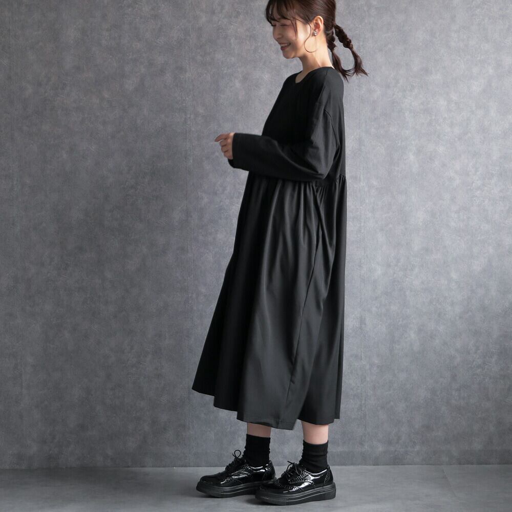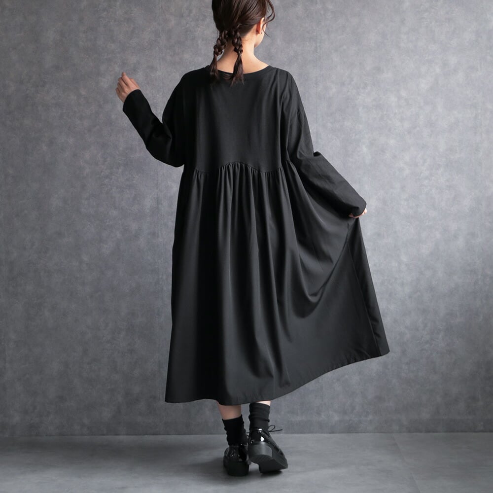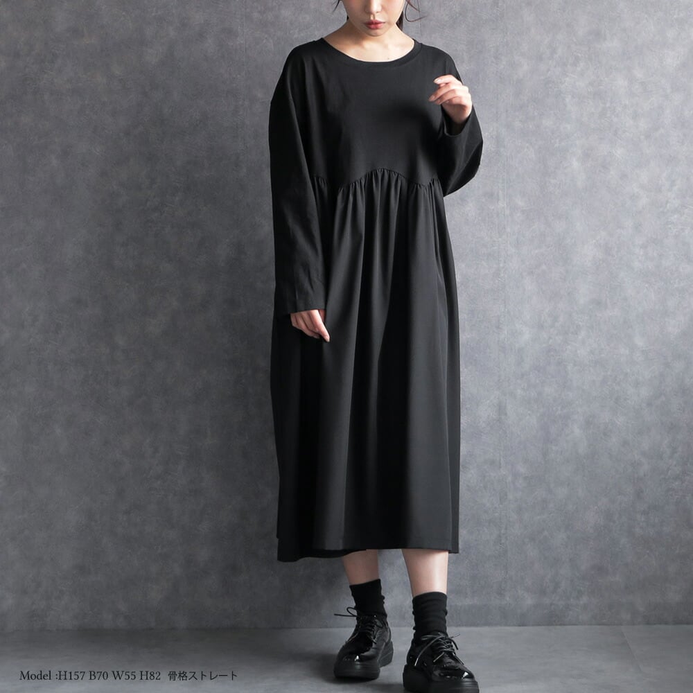 330117 any day エニーデイ ワンピース レディース 長袖 黒 コットン100% ロング丈 ワンピ カジュアル ゆったり 体型カバー シンプル 20代 30代 40代 送料無料